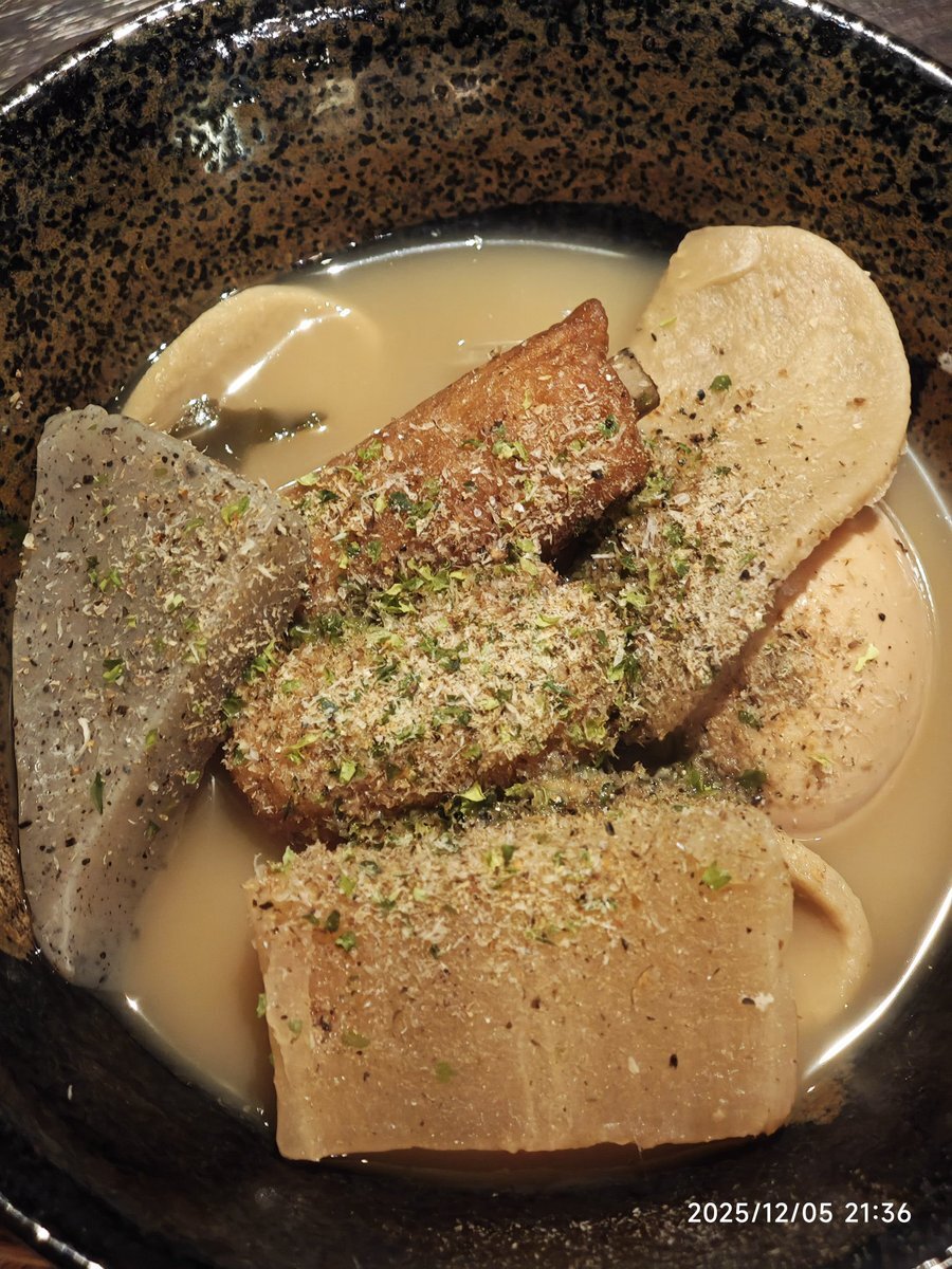 二次会のバーで静岡おでん出てくると思わなかったwww おでん粉と黒はんぺん回収 #むんむる旅 pic.x.com/3KqSXARher