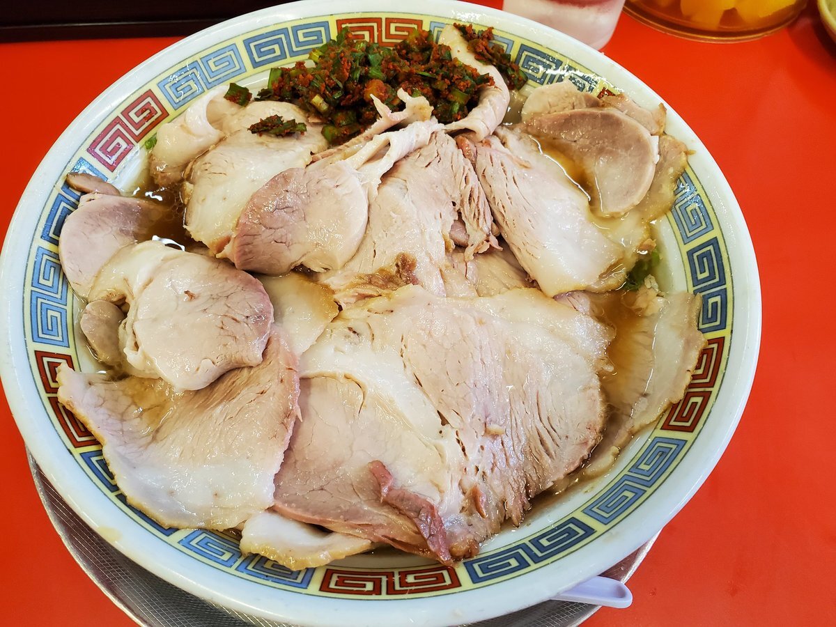 #もっこす舞子店 チャーシューメン大盛 やきめし ネギ 赤玉ミンチ カタメアブスクハンバラ ちょい薄めのサラッとしたスープ トッピングネギ、おろしニンニクとチップ、ニラコ、赤玉ミンチを投下するので逆に丁度よかった 大判の赤身もよい味わい No.40 #もっこす #神戸の中華そば pic.x.com/PKW92kiH9i