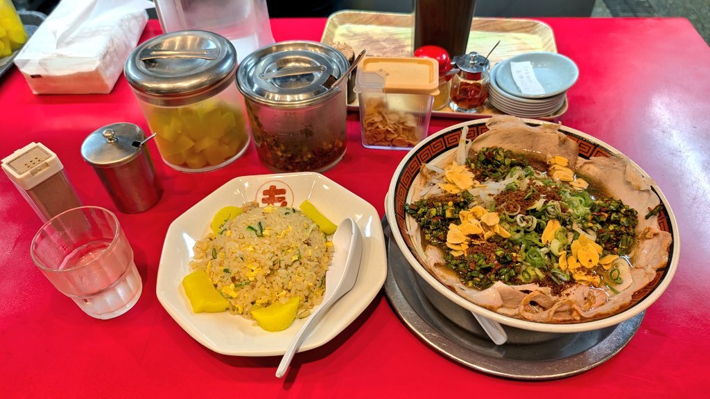 皆様、お疲れ様です。 低浮上すぎて、ごめんなさい。 目下、転勤準備中にて、通知は確認しておらず、合間にXを開いて、TL追うだけ、通知お返し出来ず、申し訳ない。 先日、#もっこす 食べ納め。 #もっこす工場店 のやきめしは本当に美味!しかも量多い!プラス餃子を味噌ダレで。これ、中華そばですから! pic.x.com/mx1LSr1DNO
