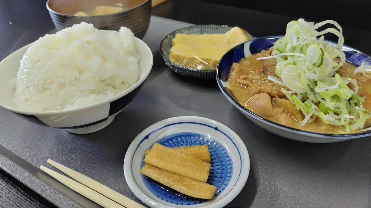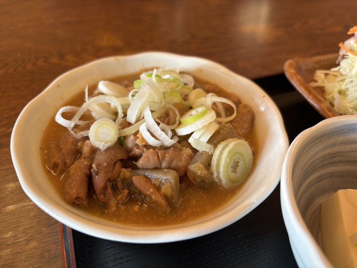 オススメで メニューに載っていない もつ煮定食(ごはん大盛り)に決定💕 柔らかモツも美味しいけど 味しみしみの 大根 にんじんが 美味しい〜 ✨ 結局 ご飯おかわり😆 #もつ煮 pic.x.com/XYu03frZ5q