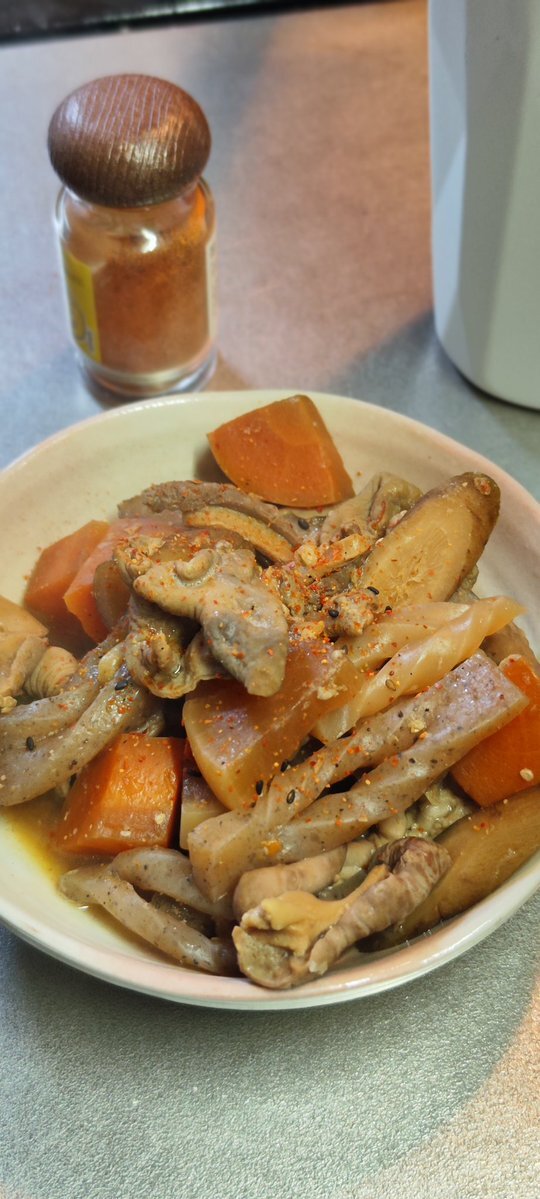 自家製もつ煮を肴にお土産の芋焼酎を飲む 焼酎は味は甘くて美味しい 香りはアルコール臭が強いので開けてから少し経った方がバランスが取れるかも もつ煮はコンソメと隠し味にお酢を入れるのが自分流レシピ #自炊 #料理 #もつ煮 pic.x.com/2J7iCoC6t1