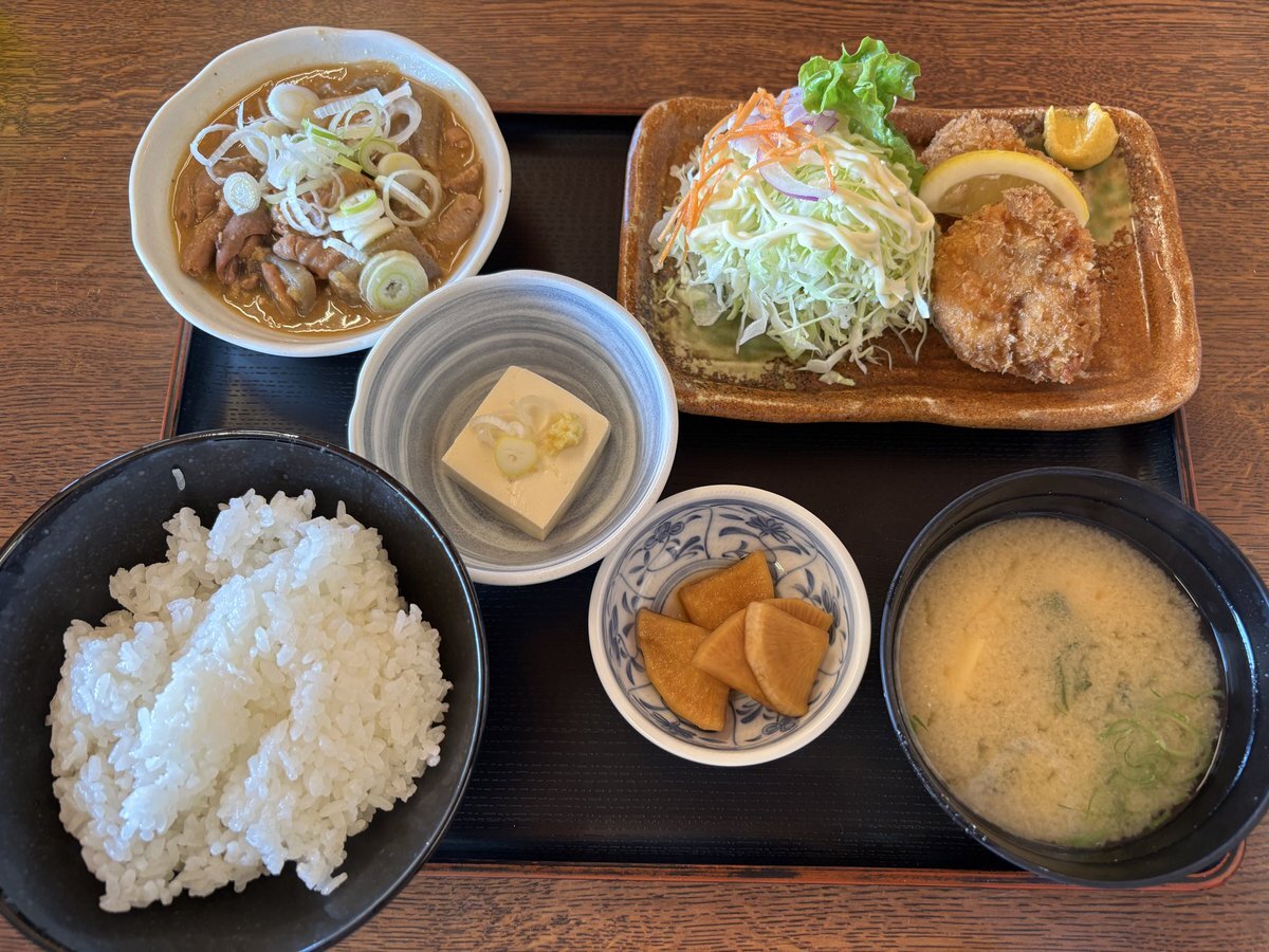 昼食はヒレカツ定食(ミニもつ煮付き)。ご飯は並盛りでもボリュームあるけど、後半戦はモツ煮をぶっかけて食べるから大盛りにした方がよかったかな。モツ煮がめっちゃ柔らかくて美味しかった😋 #モツ煮 #もつ煮 pic.x.com/EJtwHSNQkt