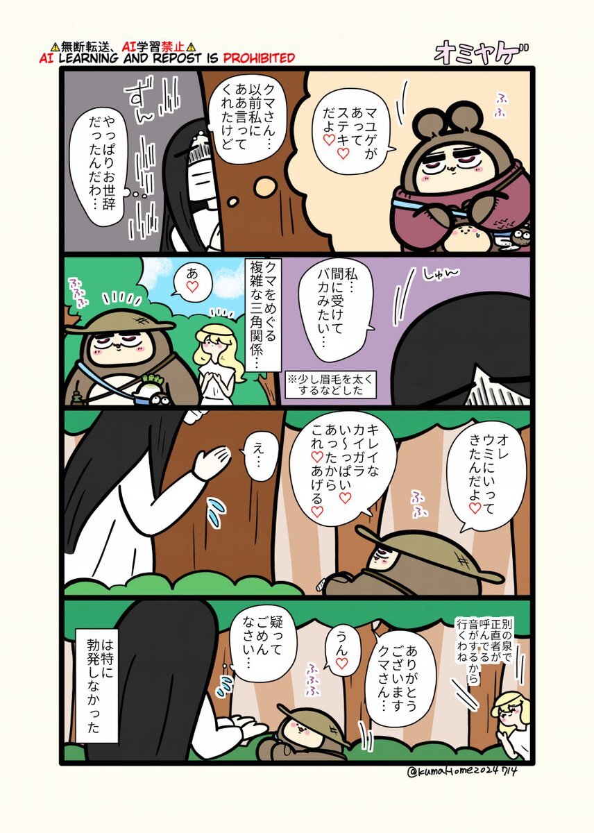 森きってのプレイボーイ?クマ #クマとネコとトリ #ゆるいイラスト #ゆる絵 #漫画が読めるハッシュタグ #動物イラスト pic.x.com/t1SsbBBrsS x.com/kumaHome202371…