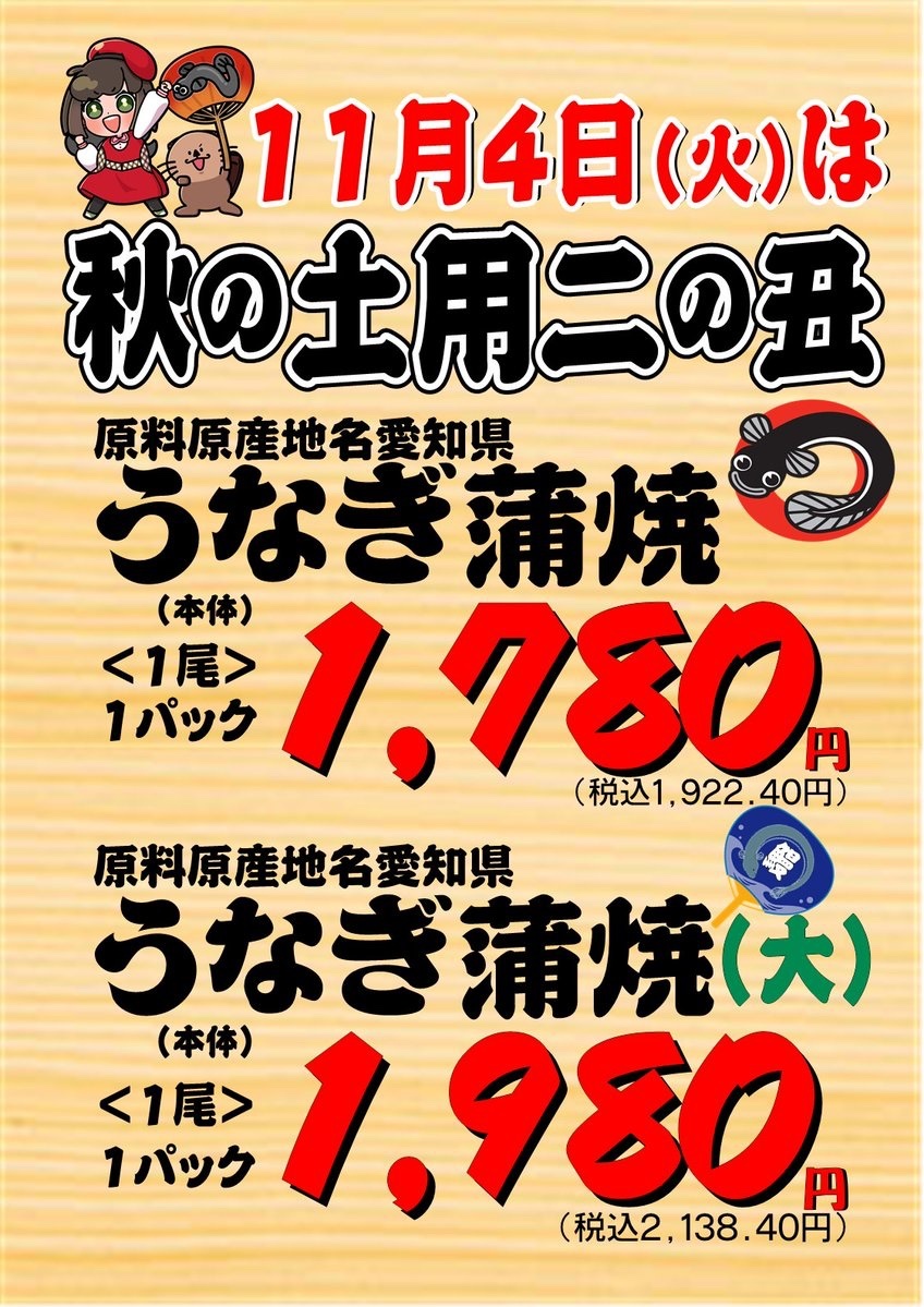 \\💪11月4日(火)は #秋の土用二の丑😋// 👇脂が乗った #うなぎ と相性抜群👍 #山椒 #岩下の新生姜 #奈良漬 #食欲の秋 #アオキスーパー #らっこ #ラッコ #らこぽん #あおきみらい #らこみら #土用丑 #土用の丑 #土用の丑の日 #鰻 #うなぎ #鰻の蒲焼 #うなぎの蒲焼 pic.x.com/hRFOP1yzXU x.com/AokiSuper_CoLt…