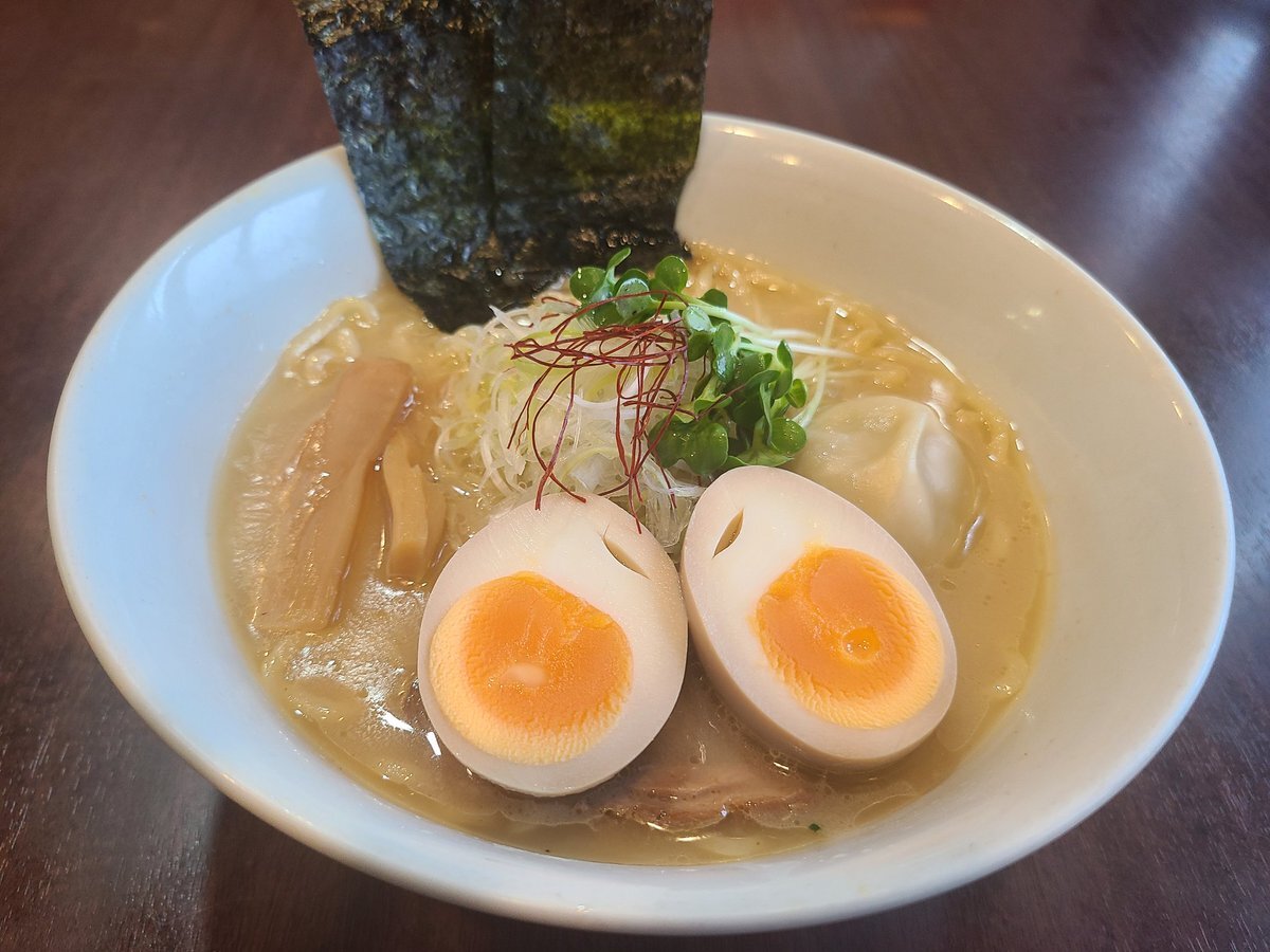 📍手打ち 蓮(森下) 🥢醤油海老わんたん麺 🥓炙りチャーシュー2枚 🥚味玉 分厚いチャーシューの下からリフトアップしても負けない手打ち麺最高☺️分厚いスープは滋味深く量も最適🤔お心遣い感謝🙇群馬遠征の感想楽しみ🤗美味すぎごちそうさまでした🍜 #ラーメン #らーめん #手打ち蓮 pic.x.com/hjgRnbH6Bn