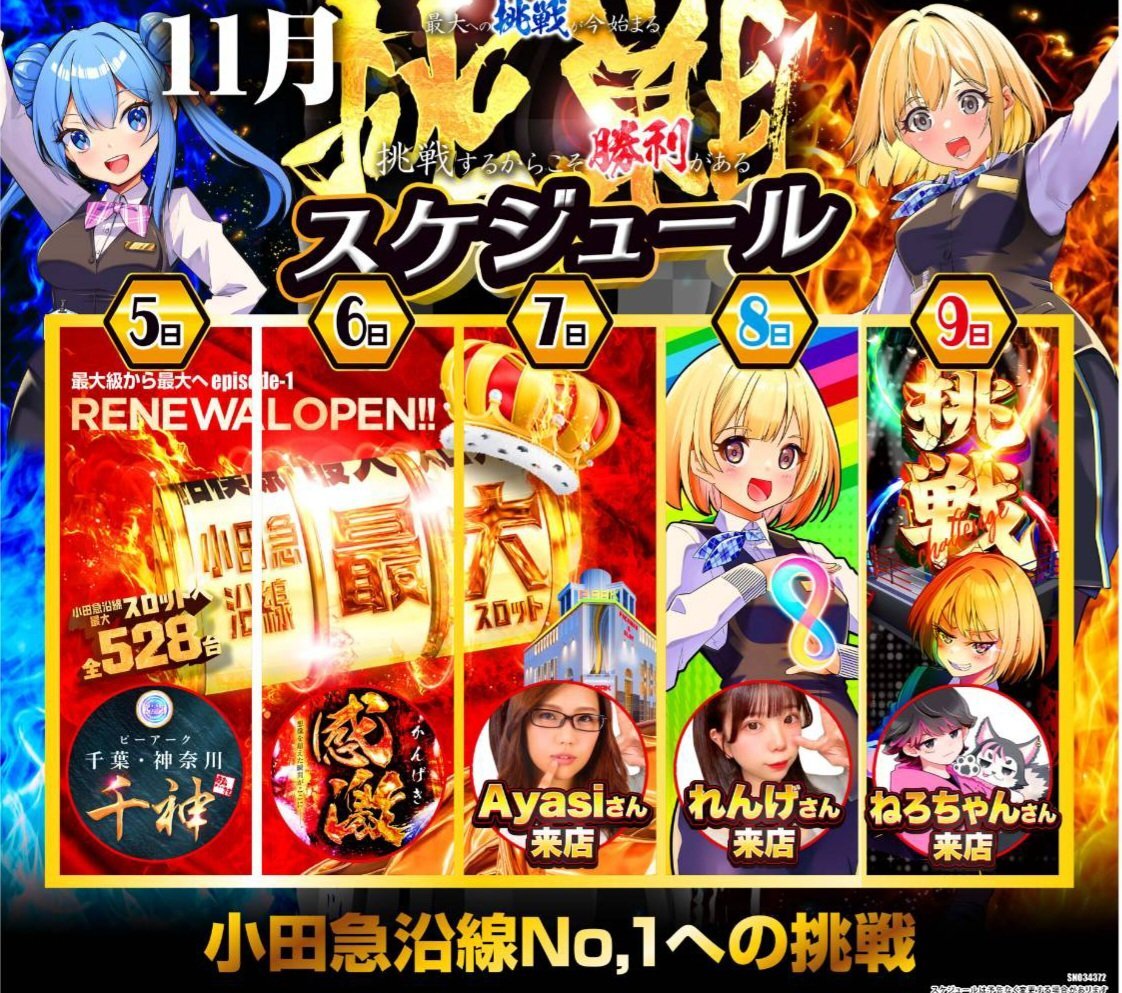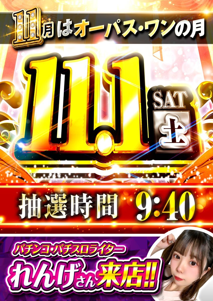明日11月1日のご案内 抽選時間9時40分 ✨創業月間&統括指令✨ 🔥れんげさん来店🔥 🔥エイリやん🔥 🔥ヴヴヴ初代再覚醒🔥 🔥ジャグラーシリーズ🔥 北斗は楽しみ増!月間オススメ機種 "朝イチ"から狙うべし! ヴヴヴ導入直前で初代再覚醒! ジャグラーシリーズ安定の推し #オーパスワン成瀬 #れんげ pic.x.com/lyCR8JoyDr