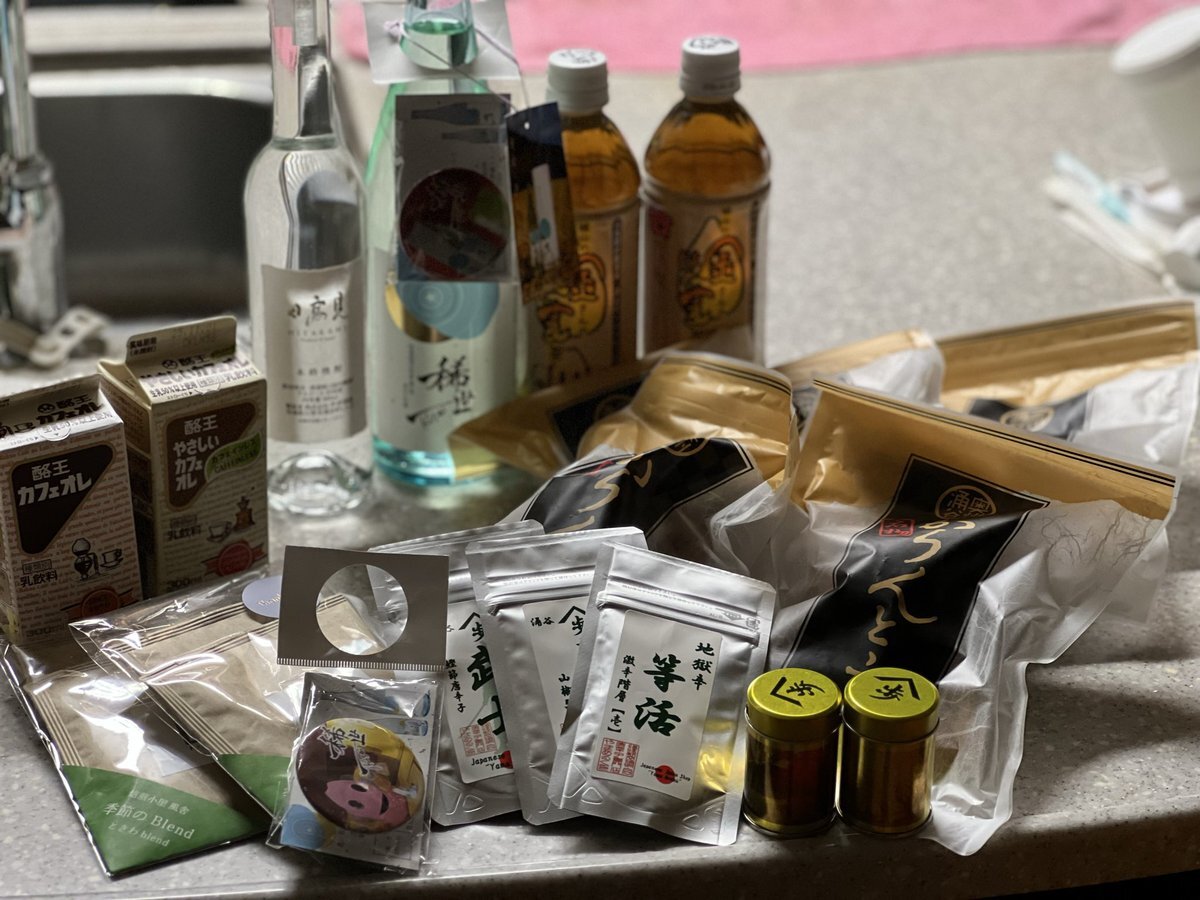 涌谷町から帰宅。今回お会いした方ありがとうございました。あら茶屋さんではご主人に色々な話を聞けました。稀世はあまり長期熟成に適さないとか。氷温冷蔵庫なら大丈夫とか積算温度が関係してるらしい。 はと麦茶は最上さんの店頭あった1ケースと2本だけ かりんとう5袋じゃ足りないな #わくわく涌谷 pic.x.com/9nYf9eZJJk