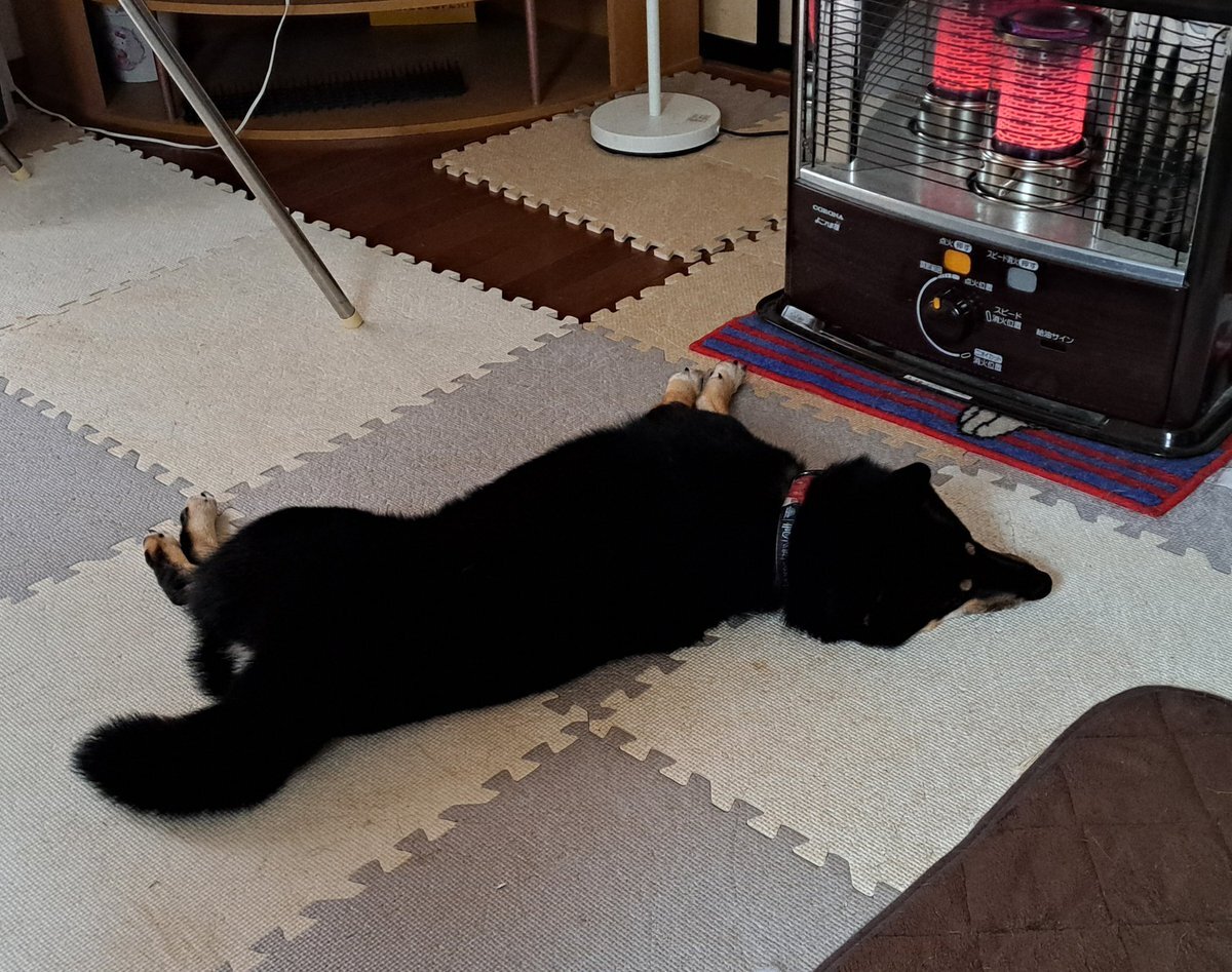 昨日は暑かったのに 今日は寒いなぁ~~ おためしで ストーブ点火🔥 陣取っておる(笑) #わんこ #柴犬 #黒柴 おねぇちゃん①が きのうのよるあしたはシャンプーっていってたけどいやだなぁ~~ pic.x.com/qFvnpjvTR4