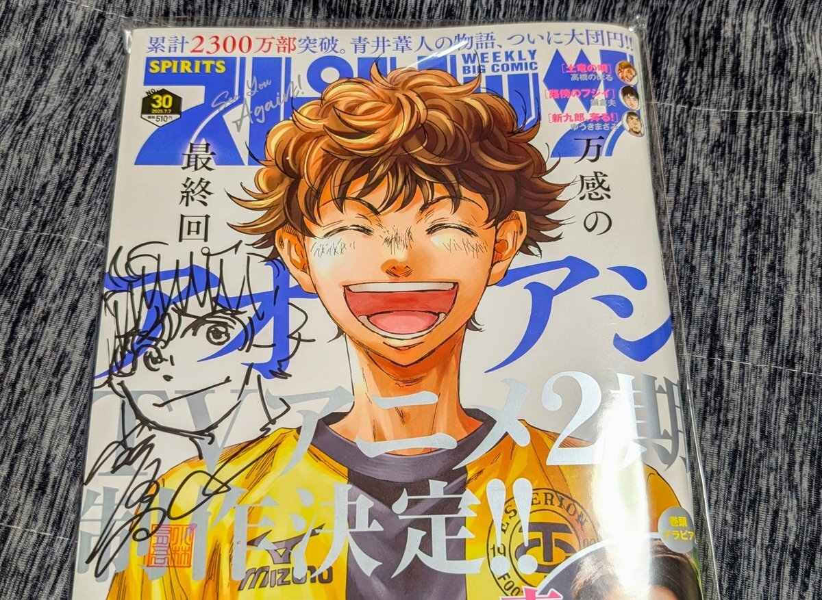 小林有吾先生のサイン付きアオアシの最終回号届いた〜〜👏😭✨ サッカー関心なかった女がアニメをきっかけに原作読んで試合シーンからボロボロ泣いた大好きな作品 #アオアシ pic.x.com/1XN05wHfMl