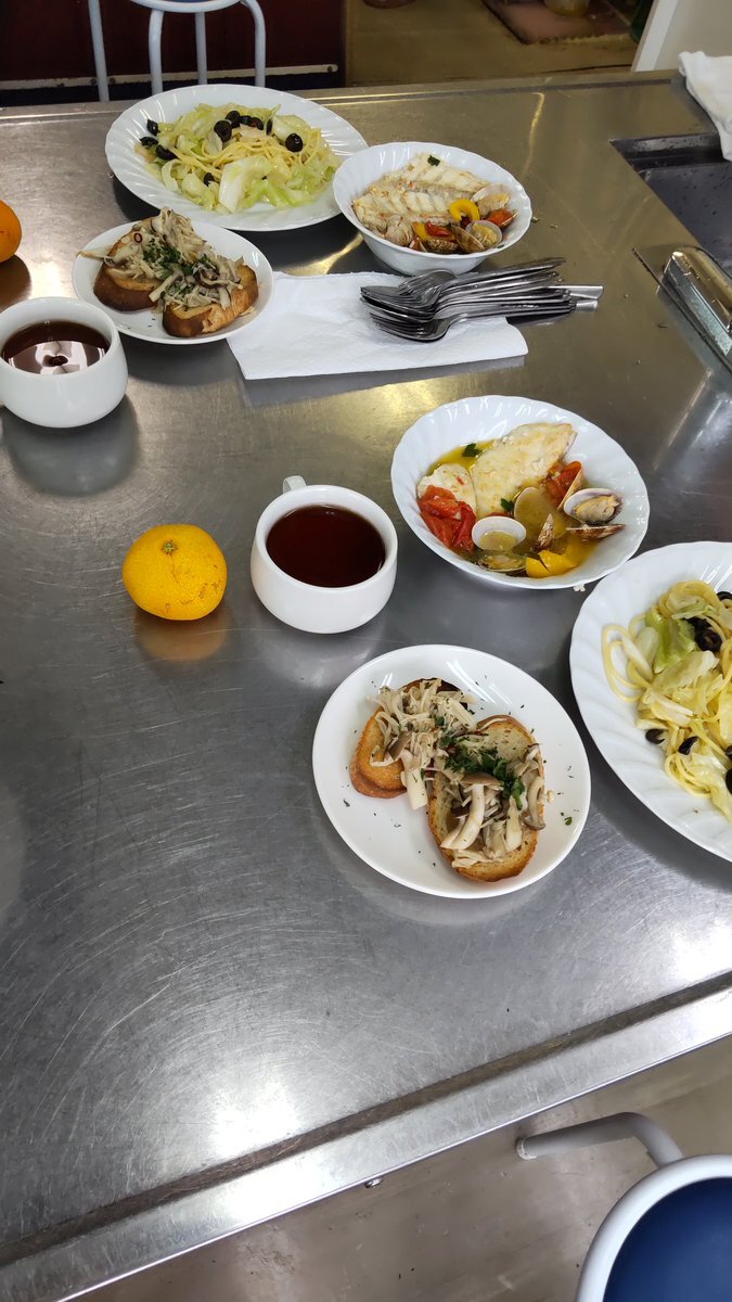アクアパッツァ、キノコのブルスケッタ、キャベツとアンチョビのペペロンチーノ😋🎵 まいう~😋🎵 #料理教室 #アクアパッツァ #ブルスケッタ #キャベツとアンチョビのペペロンチーノ pic.x.com/PQcOQ4zf3Z