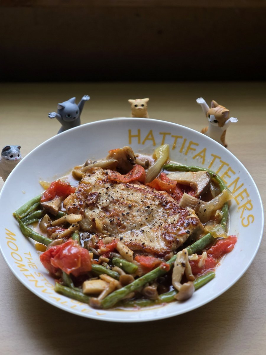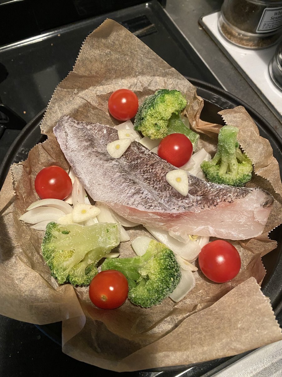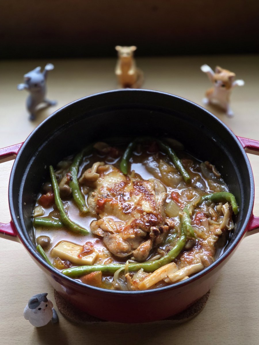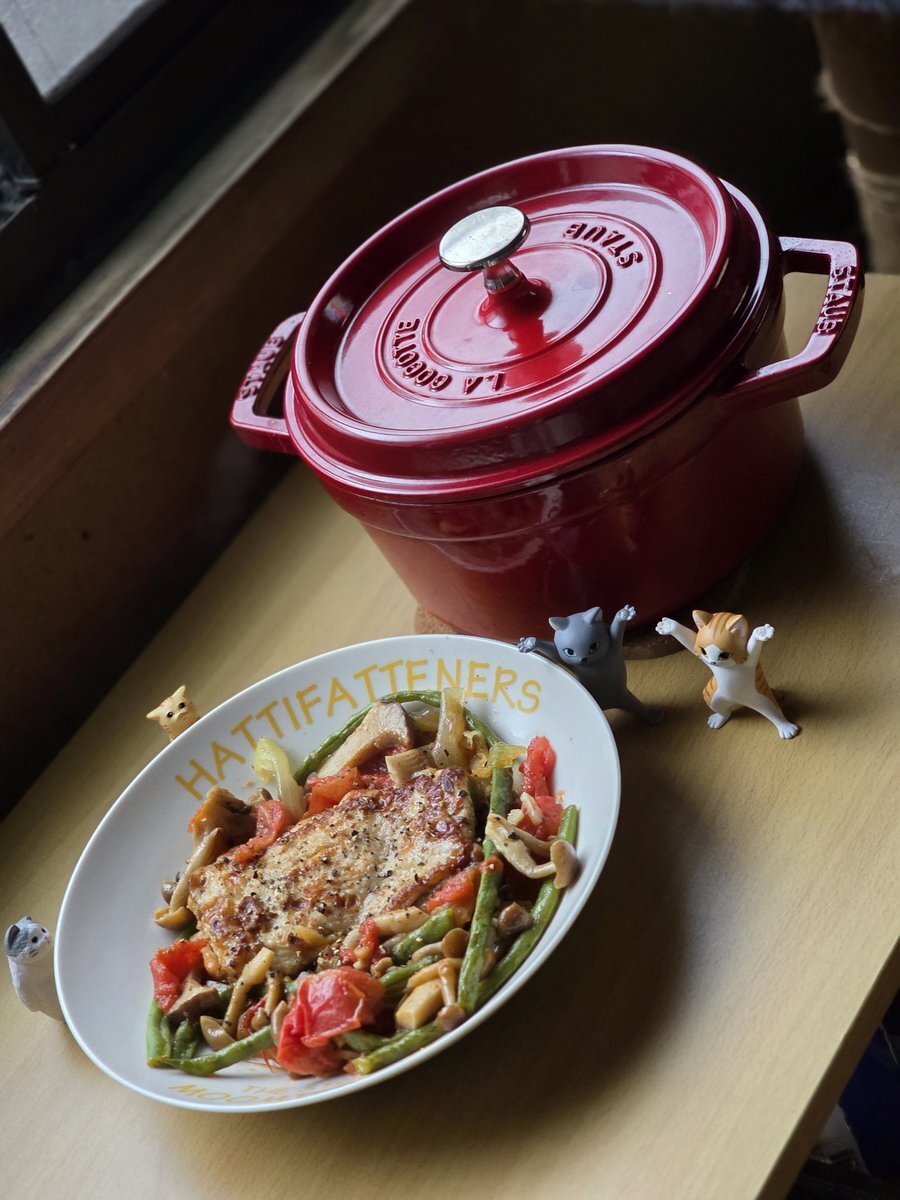 ストウブ鍋を貰ったので、本日は「鶏もも肉のアクアパッツァ」作ってみた😊 野菜の水分だけで十分、出汁がでた残りの汁にはお米入れてリゾットにする予定🍛 #アクアパッツァ #鶏もも肉 #ストウブ鍋 pic.x.com/ACBv2Af6Um
