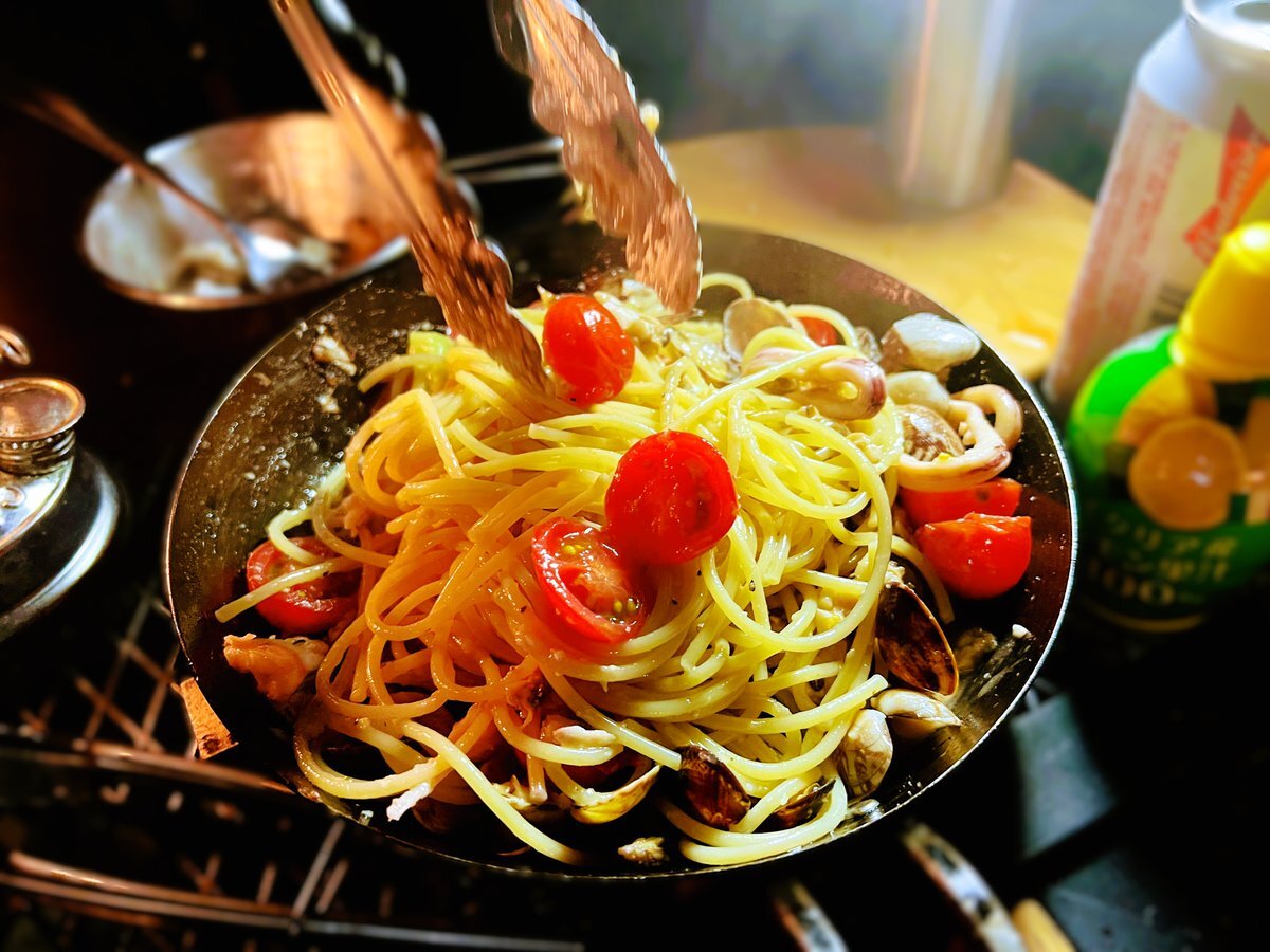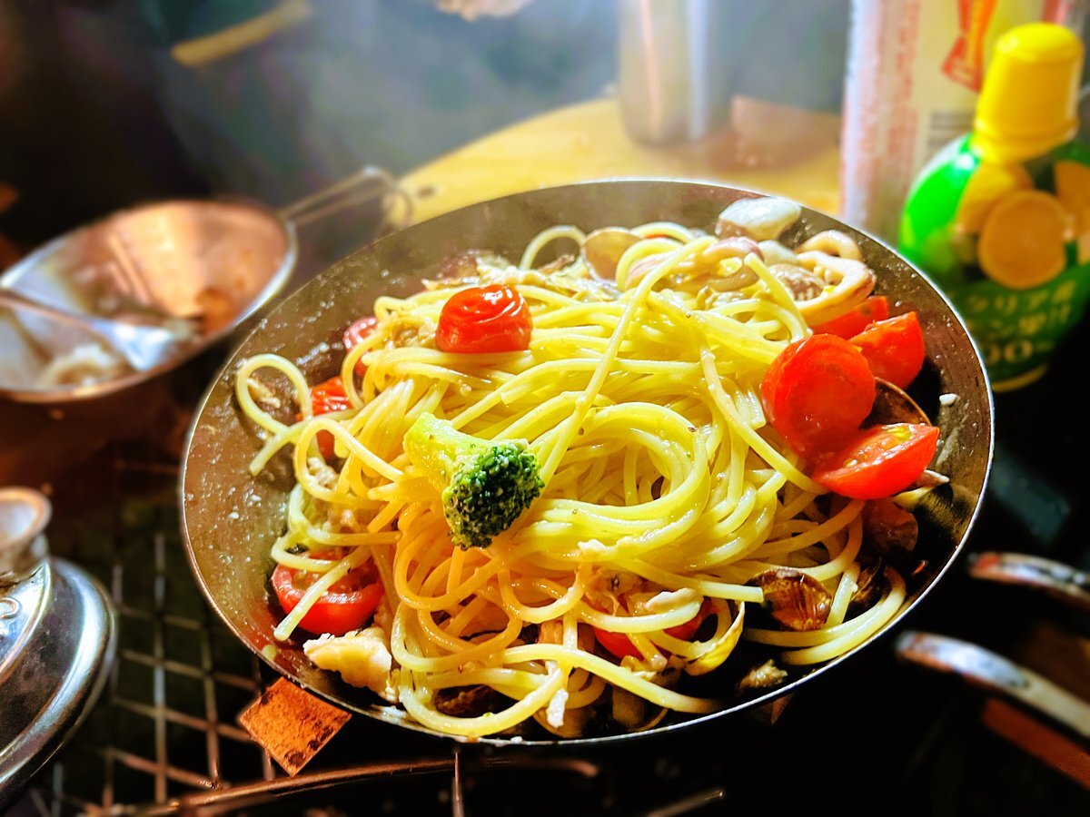 ある日のキャンプごはん。 アクアパッツァからの、 〆のパスタ。 #キャンプごはん #パスタ #アクアパッツァ #焚き火料理 #イタリアン #campingcooking #campingdinner #pastas #spagetti pic.x.com/9vsQ84c63j