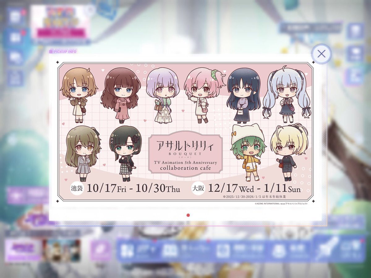 【✨「アニメ5周年記念コラボカフェ」開催記念プレゼント✨】 TVアニメ「#アサルトリリィ BOUQUET」 放送5周年を記念したコラボカフェを開催💓 これを記念して結梨と一柳隊のイラストメモリア 「リリィたちのおでかけ」をプレゼント🎁 ぜひこの機会にプレイしてみてください🍀 #ラスバレ pic.x.com/fgNcuqvbVD