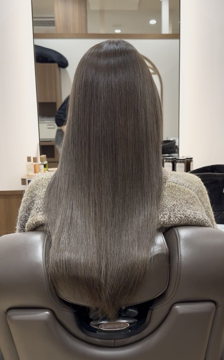 イルミナカラーで赤みを抑えた柔らかオリーブグレージュに🫒🩶 仕上げにTOKIOでダメージ補修、アプトグロスでツヤと手触りをプラスしました🫧 光に当たると透けるような透明感カラーで、重たく見せたくないロングにもぴったりです🌤️ #カラーモデル募集 #familiarBOND #国立 #美容室 #アシスタント pic.x.com/EcHGBOyT1w