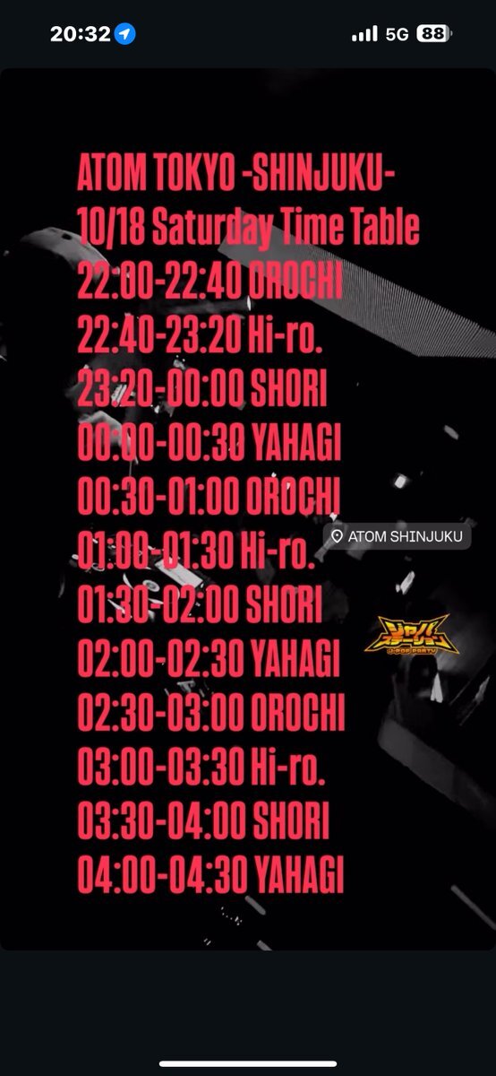 10/18(土) 22:00~4:30 📍ATOM TOKYO -SHINJUKU- JPOPパーティー #ジャパステーション DJ:SHORI/YAHAGI/4⤴︎︎︎/OROCHI #ジャパステ #JPOP #SHINJUKU #クラブ #アトム #JPOPDJ pic.x.com/jvIen8iH4p