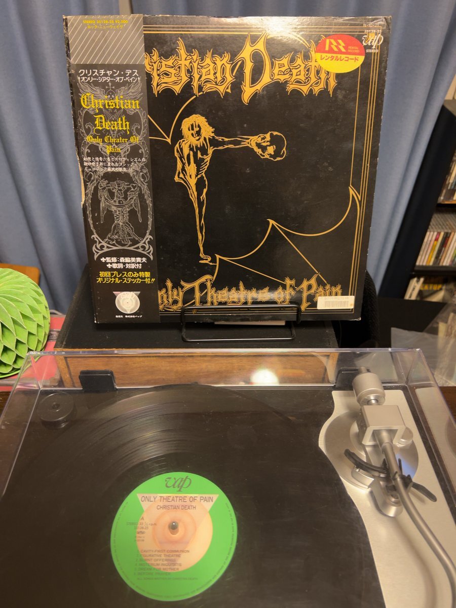110円で買ってきた、クリスチャン・デスの1stアルバム『オンリー・シアター・オブ・ペイン』を聴いてます 名前しか知らなくて、こういう機会でもないと聴かないゴシック・ロック/ポジパンな音ですが、カッコいいですねえ! ジャケはかなりボロながら、盤は綺麗でしたよ #アナログレコード pic.x.com/aJNkjo5iOa x.com/mwesterberg007…