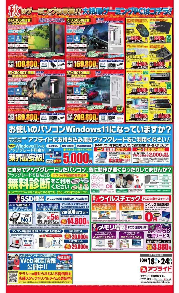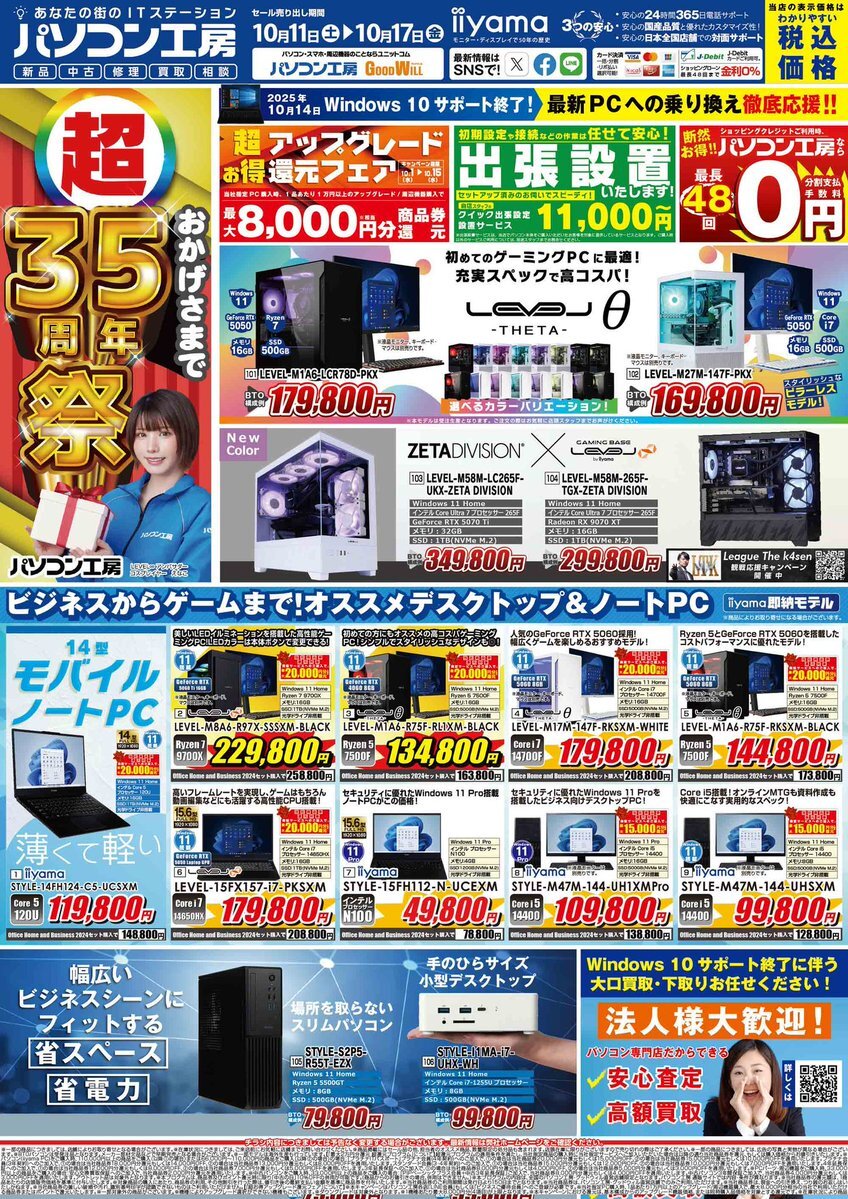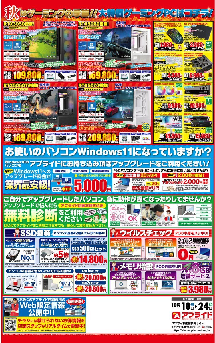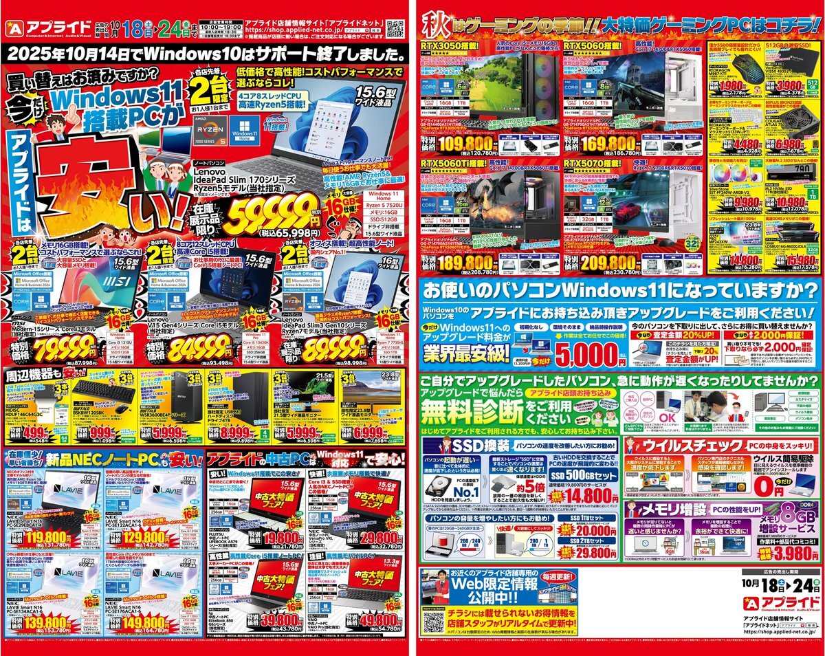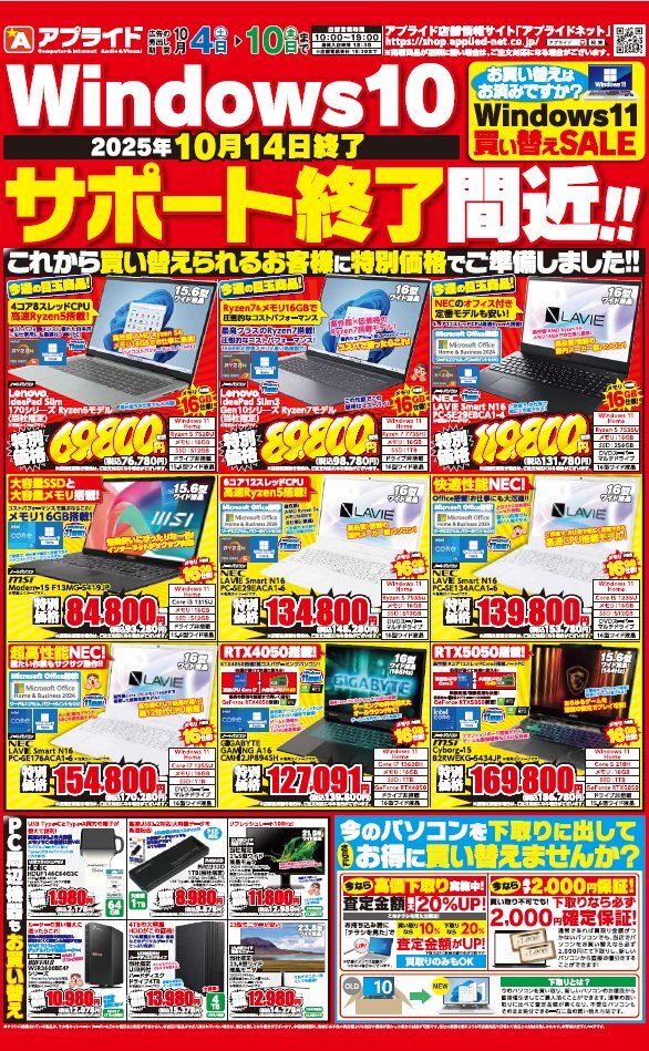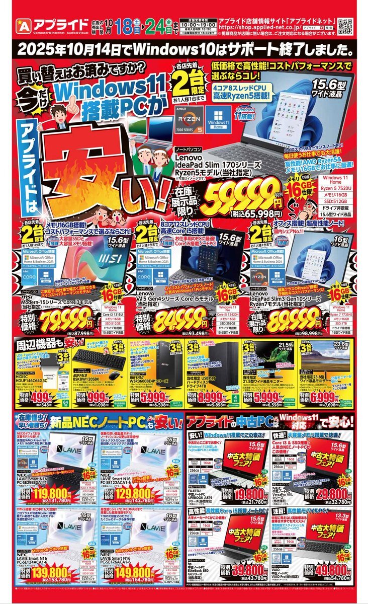 【🎉今週末からのチラシ情報🎉】 先日ついにWindows10がサポート終了しましたね 皆さま移行は完了しましたか?👀 まだの方はぜひアプライドへ!💻 #アプライド #高松 #パソコン pic.x.com/GkeYG82KJZ