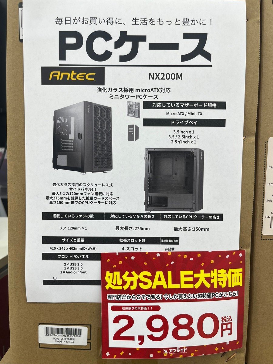 #Antec 様のPCケースが大特価! micro-ATX対応のミドルタワ―ケースです 最大360mmのラジエーターも搭載可能です! #アプライド #高知 #Windows10終了 pic.x.com/pD7LZpaPKy