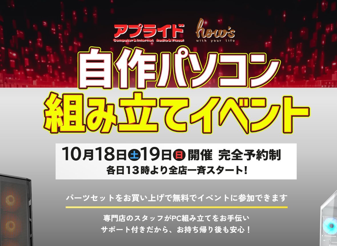 🔧✨大好評の自作PC組立イベント✨🔧 10/18(土)・19(日) 各日13時スタート! Windows10サポート終了が近づく今、 買い替えにピッタリな Windows11対応PC を スタッフと一緒に自作できます💡 ✅指定パーツ購入で参加無料 ✅参加者限定で特典5万円分付き 👉times.applied-net.jp/kumitate_event/ #Windows11