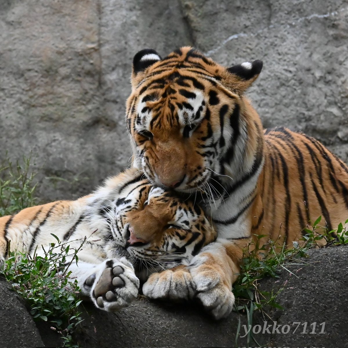 2025/10/18☁ ソーン🐯&ローラ🐯 開園直後 園内は遠足の団体様でとてもにぎやか😇 そんな様子を見つつ、相変わらず仲良し🐯💓🐯 #浜松市動物園 #アムールトラ pic.x.com/1tWusY4G0J