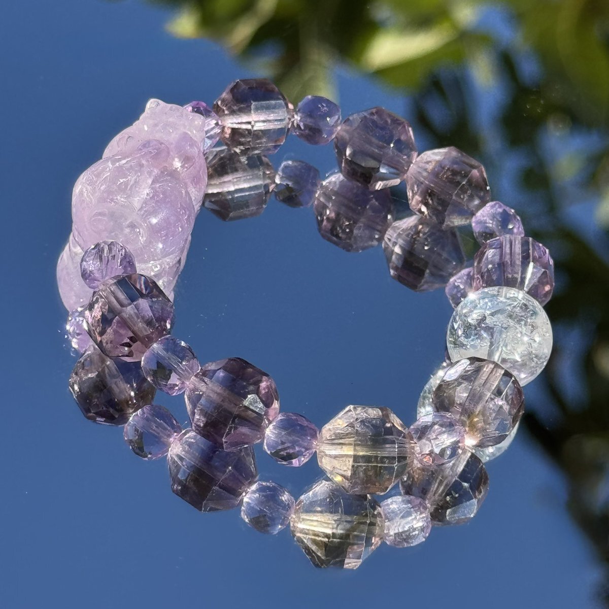 ヒキュウ&アメトリンとアメジストのキラキラブレスレット✨✨✨ 透明感のある輝くアメジストとアメトリンは、どこにいても高貴な紫色の光を放ちます💜✨ カラー効果もあり精神を整えて 癒してくれます💜✨✨✨ minne.com/@25niconail #天然石 #守護石 #アメジスト #アメトリン #ヒキュウ pic.x.com/b6xRUssV2z