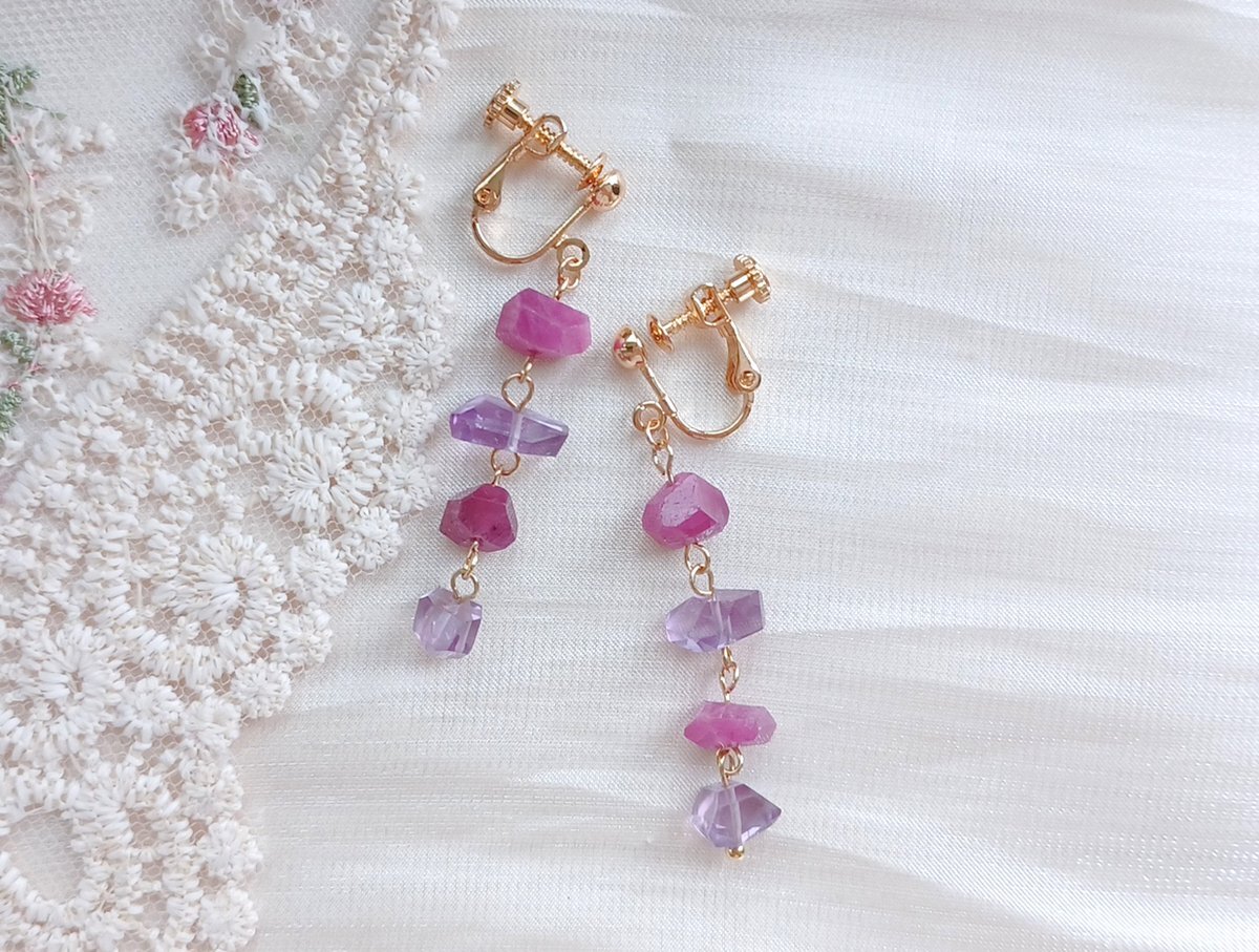 #ルビー #アメジスト ワインのような大人っぽい色合いの天然石を ロマンティックな雰囲気のイヤーアクセサリーに仕立てました。 minne.com/items/37663963 #minne #天然石アクセサリー #パワーストーン #ハンドメイドアクセサリー pic.x.com/f4VrjMYfXK