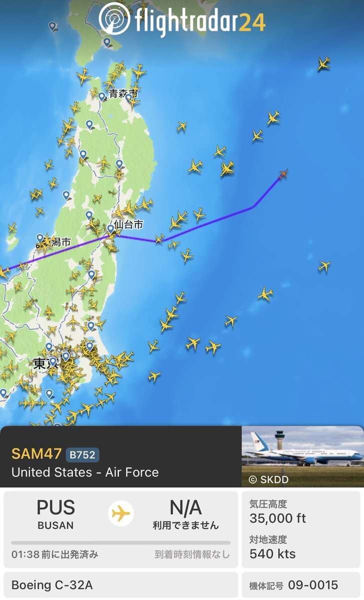 アメリカのトランプ大統領を乗せたエアフォースワンのバックアップ機が2機が日本上空を通過しました。 ありがとう、トランプ大統領。 #トランプ大統領 #高市早苗 #エアフォースワン #アメリカ空軍 #日米首脳会談 pic.x.com/mWhlhkVlsp