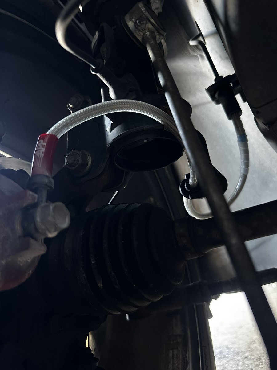 【ご新規マシン ⚫️アルト】 整備開始① お客様支給のAPP製ブレーキホース交換です。 取り付け部バンジョー部は漏れチェックスプレー塗布して漏れない事を確認いたします。 #アルト #ブレーキホース pic.x.com/6bFrsDT48m