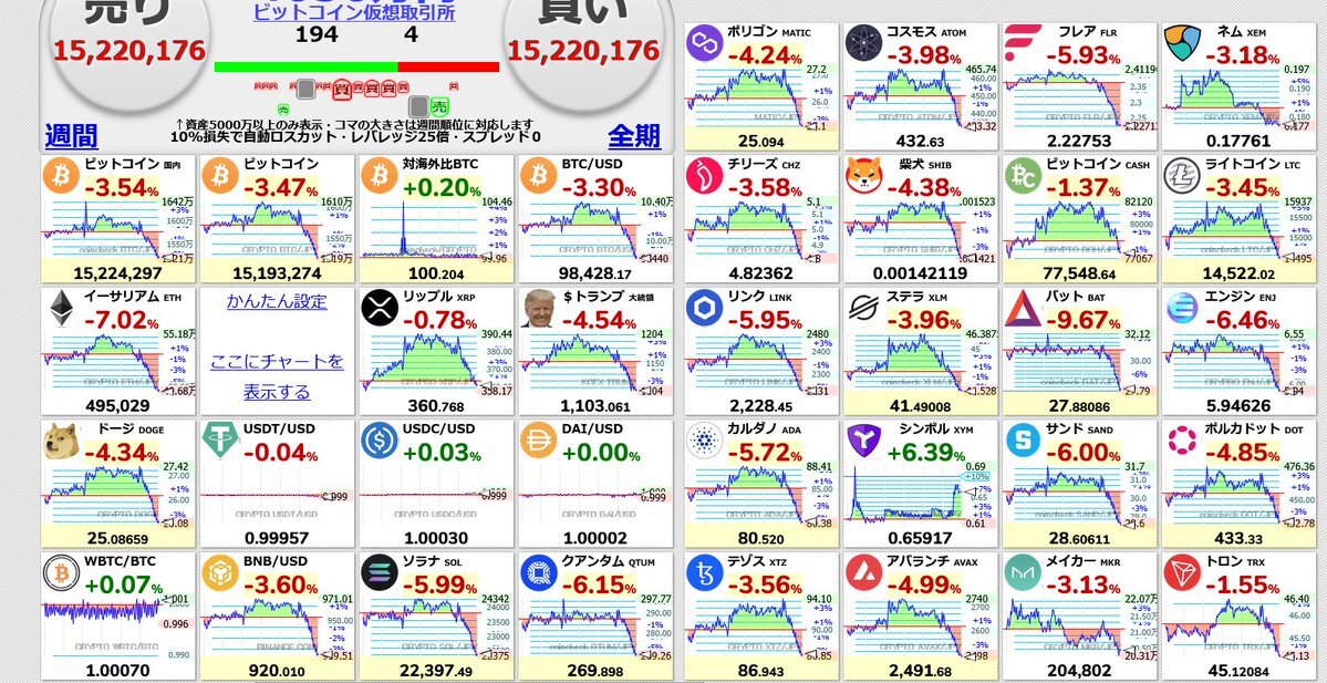 #BTC #アルト 今日は強烈な下げの日😭 BTC安値更新📉、アルトも底抜けで上昇前の水準まで落ちる📉 底打ち上昇期待でロング持つと見事に刈り取られる相場でした😢 ロング持ちの心を折ったところが底と言われますが、見事に心を折った相場となりました pic.x.com/UVCyPOREno