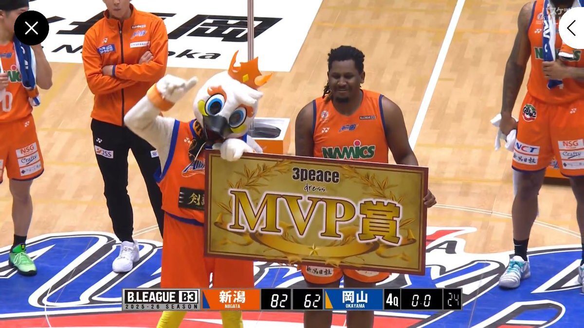 LIVE観戦終了! ヽ(≧∀≦ )ノ☆祝☆ヽ( ≧∀≦)ノ そしてBJマーーーーーック!!! MVP(о´゚∀)о<おめでとぉ!!! なに!今日の試合! 3Pも決めるしゴール下も良しボール運びもするし! 生で観戦したかったなー! 明日もこの調子で活躍して欲しい!!! 期待してるぞー! #推しはBJマック #アルビBB pic.x.com/zaN484yg5B