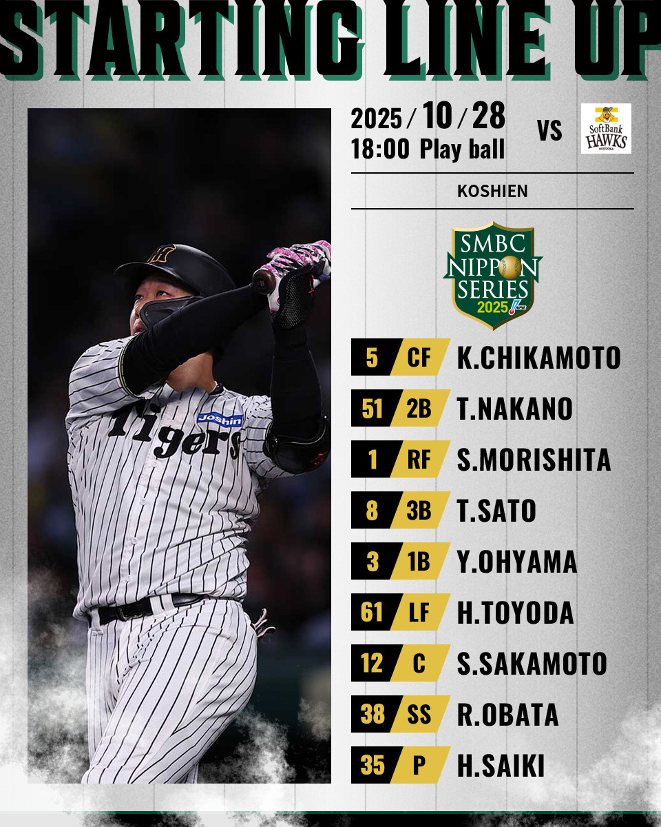 【10月28日 T-H 日本シリーズ】 本日のスタメン発表! 関西弁応援実況は公式モバイルサイトで! hanshintigers.jp/home/mobile/ #阪神タイガース日本一へ #阪神タイガース #鼓動を鳴らせ_虎道を進め