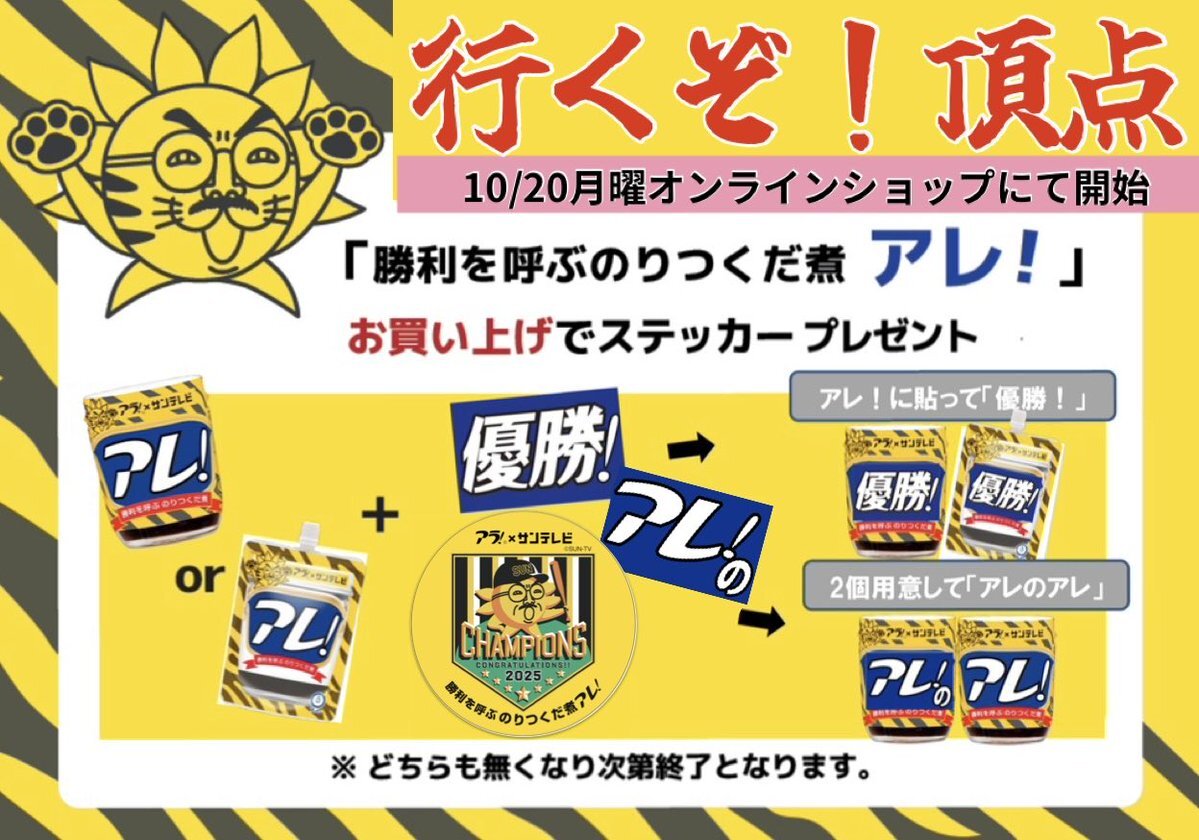 突破のアレ!ほー 行くぞ頂点 アレ!のアレ! ① 「アレ!の」ステッカー登場 ②アレ!3個セット 〜優勝!アレのアレ ver.〜 登場 ③キャンペーン開始🐯 応募は @Ara_Sioppe_60th フォロー この投稿リポスト ①②は20日月曜〜オンラインショップへ takuhaibun.shop33.makeshop.jp/smartphone/ #突破 #アレのアレ