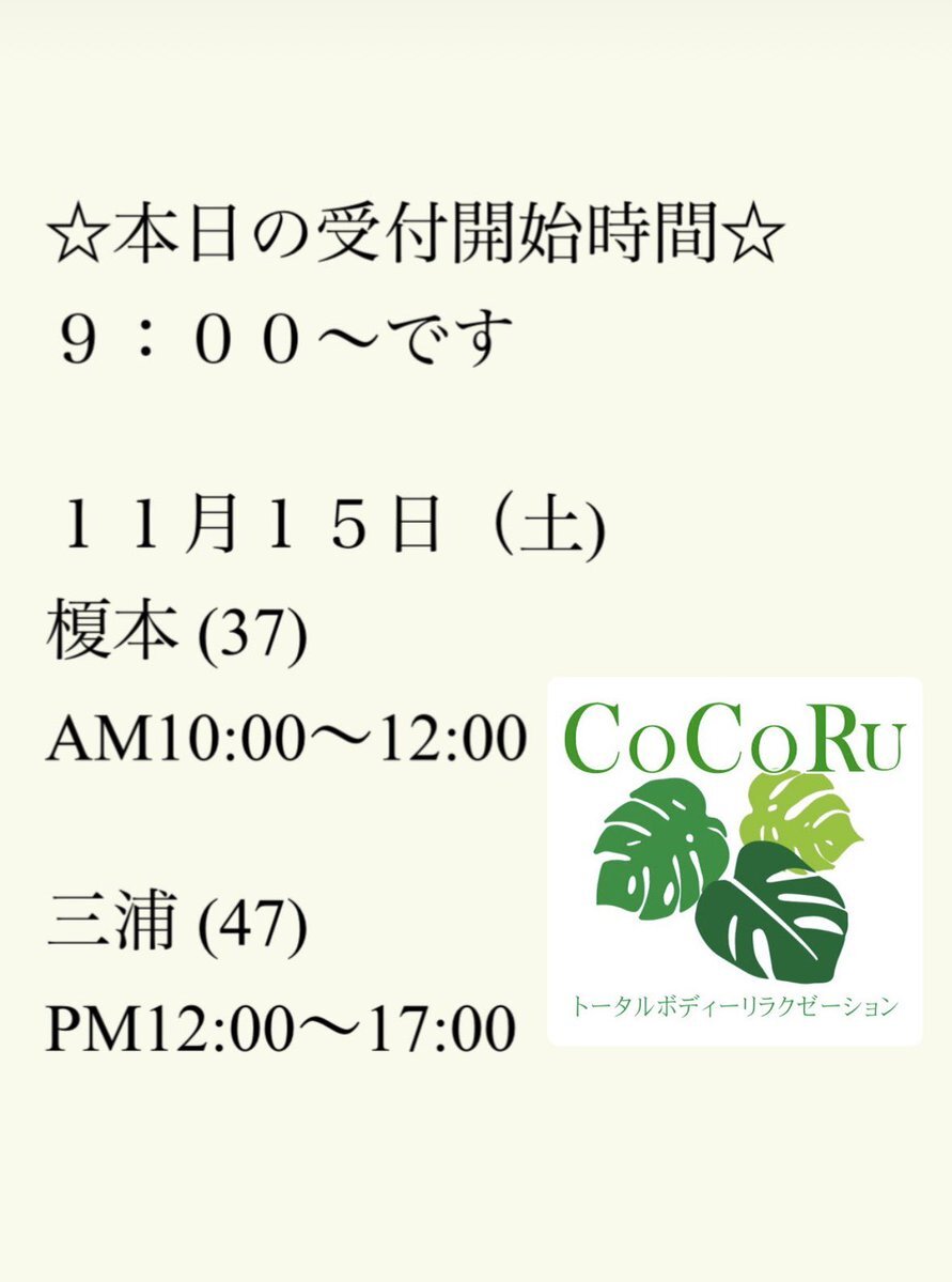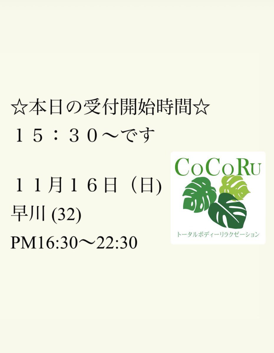 • ★11.16(日)★ 本日の受付開始時間は 15:30からになります🌿 #トータルボディーリラクゼーション #アロマオイル #トリートメント #ココル #群馬県 #伊勢崎市 #サロン #プライベートサロン #パウダー #脱毛 #ワックス脱毛 pic.x.com/pCITkZA4io