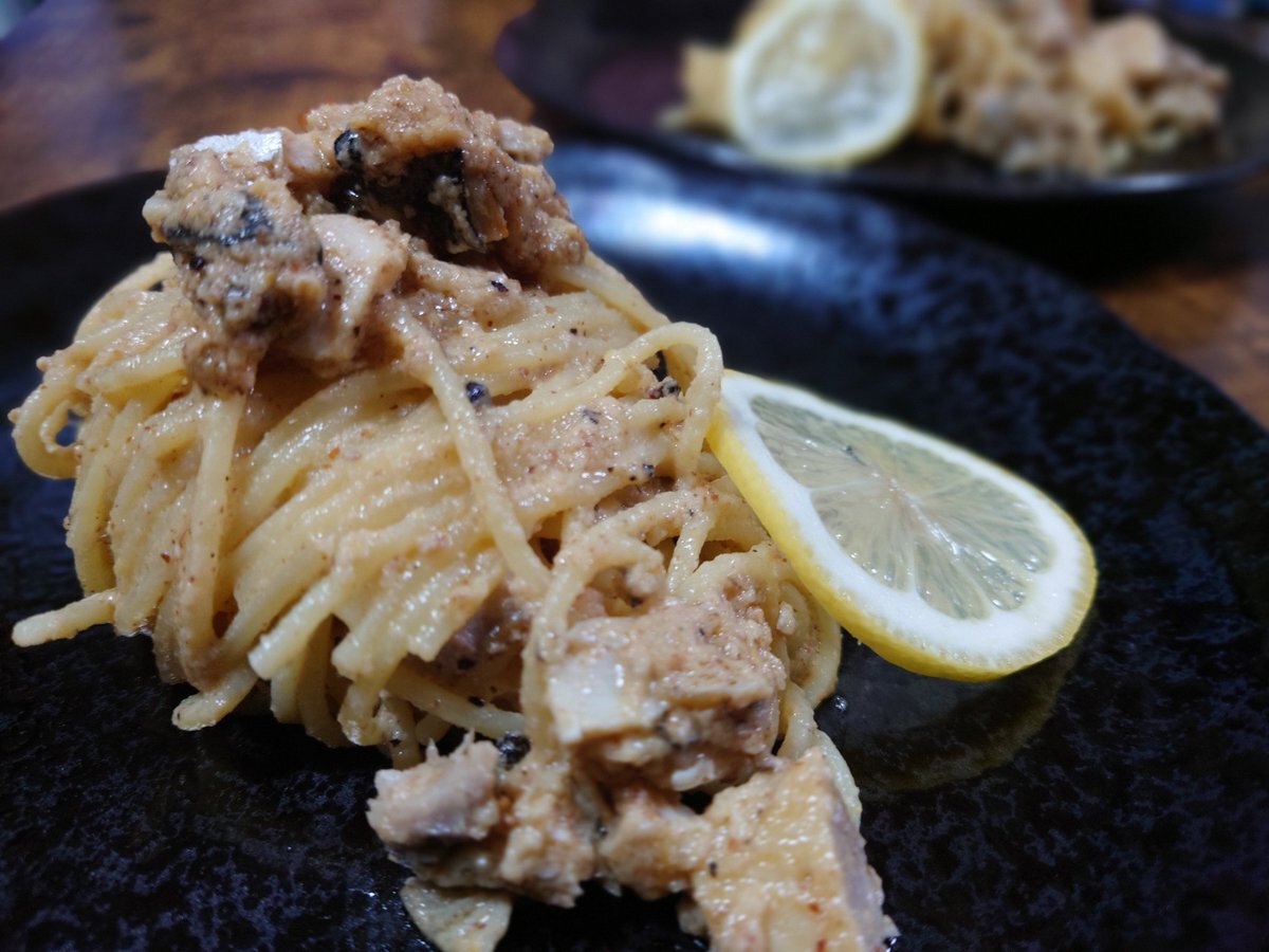 晩ごはんは嫁のリクエストで、@da_nobo さんの「アーモンドとレモンのパスタ」を鮪のすき身で作れと(-_-;) 「ハイ!喜んで!」レモンの皮を刻んで、すき身ボールにも入れて(゚д゚)ウマー リピートありだそうな♪ #おうちごはん #レモン #アーモンド #すき身 #まぐろ @slowly_fi pic.x.com/fxORwAXi47