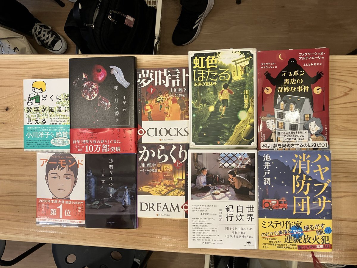 10/12に行ったイベント「たびたび読書会」の報告です。愛と優しさとファンタジーに溢れた、素敵な読書会でした。来月もやります! #桔梗坂書店 #ぼくには数字が風景に見える #アーモンド #透明な夜の香り #赤い月の香り #からくり夢時計 #デュポン書店の奇妙な事件 #ハヤブサ消防団 pic.x.com/d7PYj7LUvr