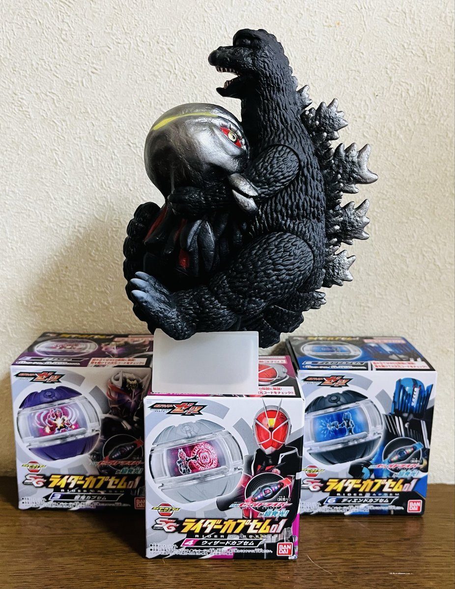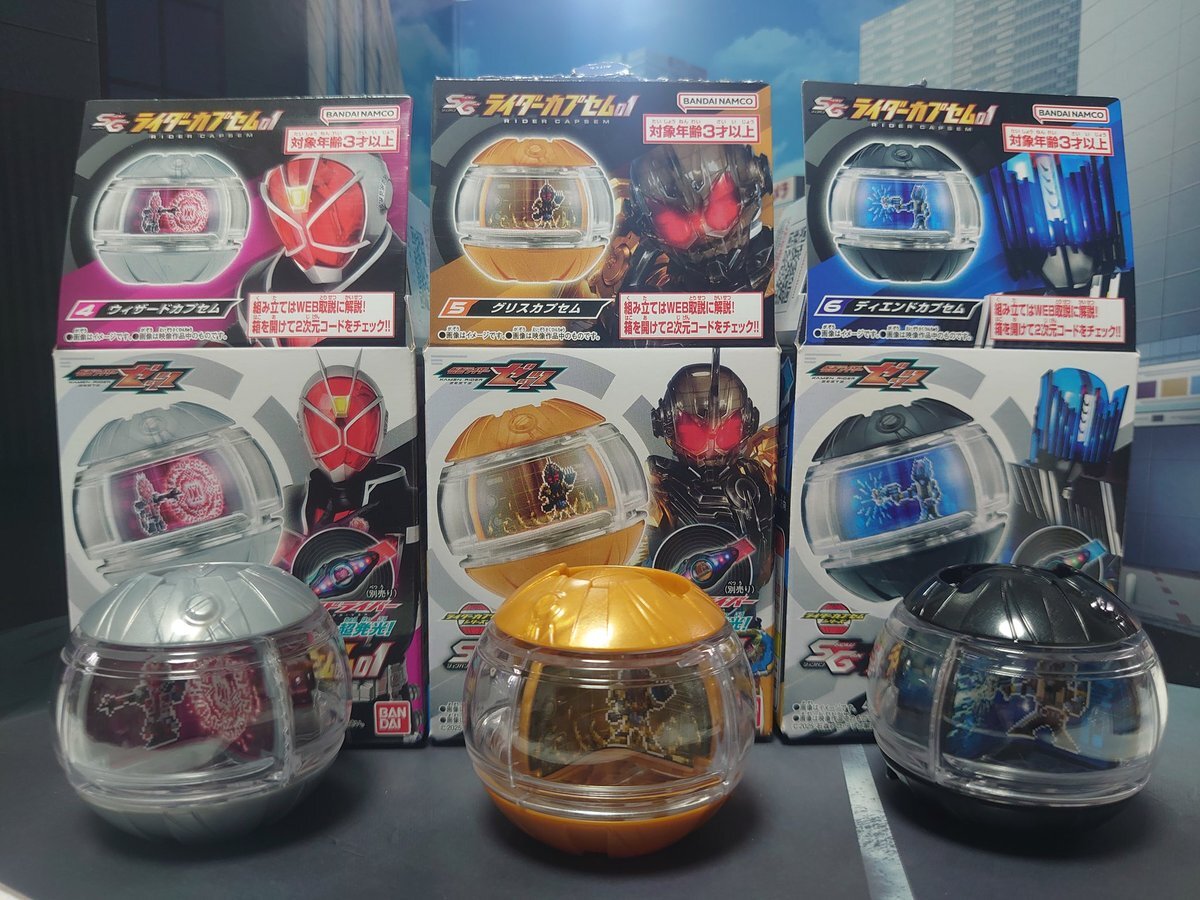 SGライダーカプセム01を発見!画像の3品をGET✨基本的に2号ライダー、3号ライダーも音声は1号と同じやから現在未所持のこの3玉を摘んだわ♬ディエンドは悩んだけど、たの幼の付録みたいなカメラ要らんからなぁ🤣 #仮面ライダーゼッツ #カプセム #SGライダーカプセム01 #響鬼 #ウィザード #ディエンド pic.x.com/8Wyu9liTx1