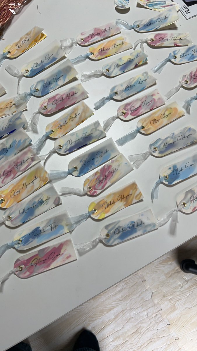 新婦様のリクエストで、ブラシストロークの席札を製作しました。 色んな絵の具を買ってみて 発色や乾き具合いなど試しながら本番に向けて試作を重ねて。 100人分くらいかな。たのしかったですねぇ。 #企業公式がお疲れ様を言い合う #企業公式相互フォロー #ウエディングアイテム #席札 pic.x.com/ARecak43v8