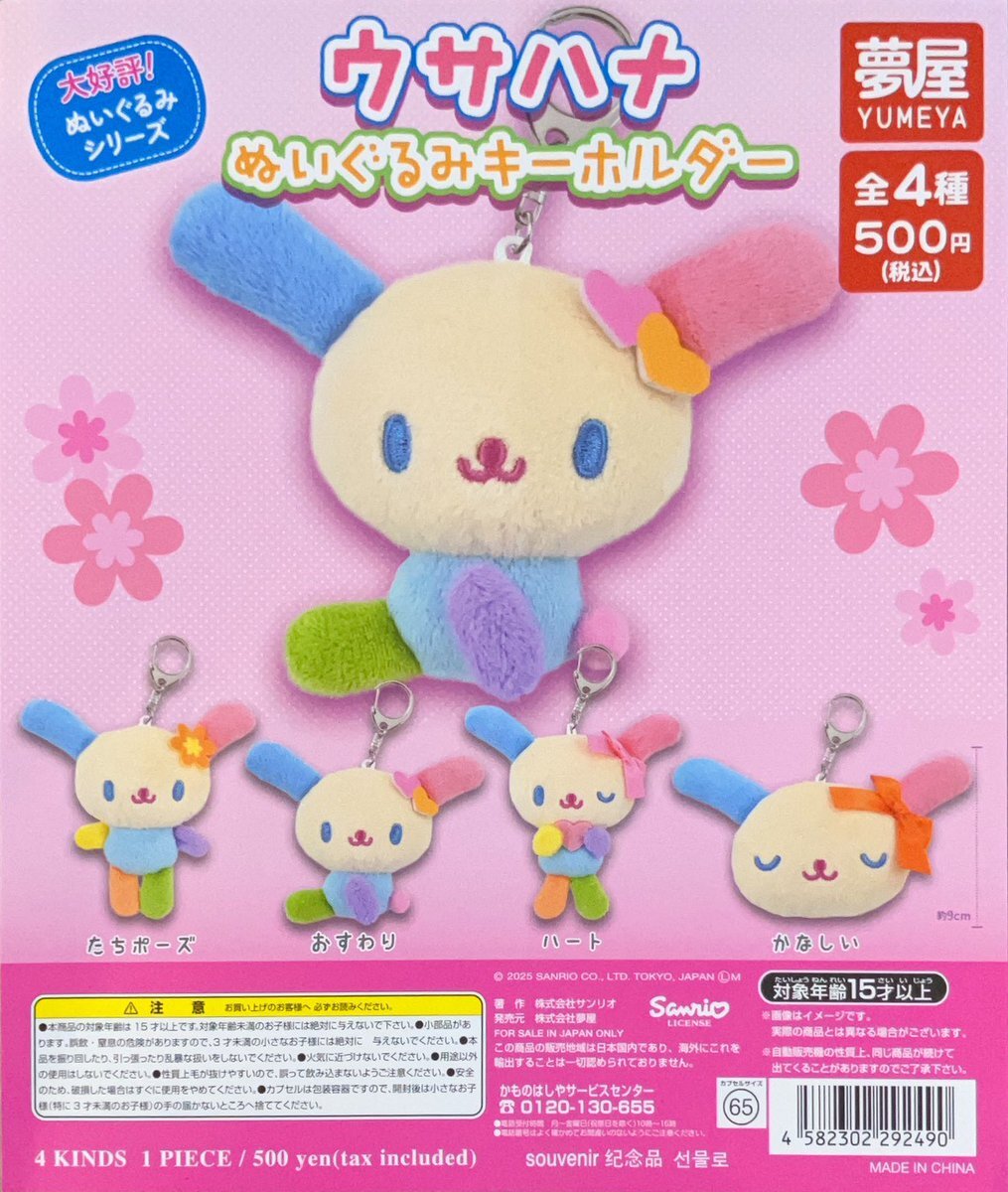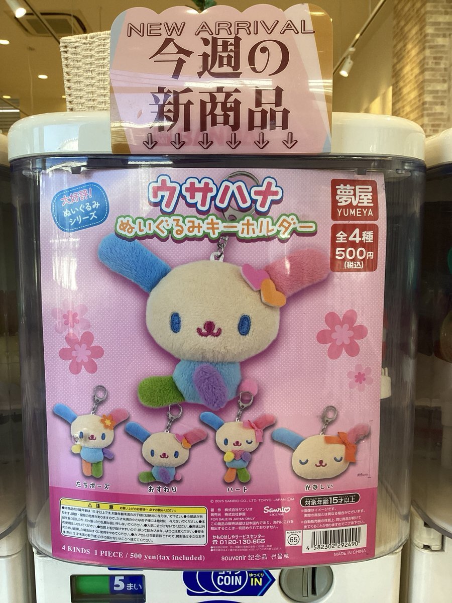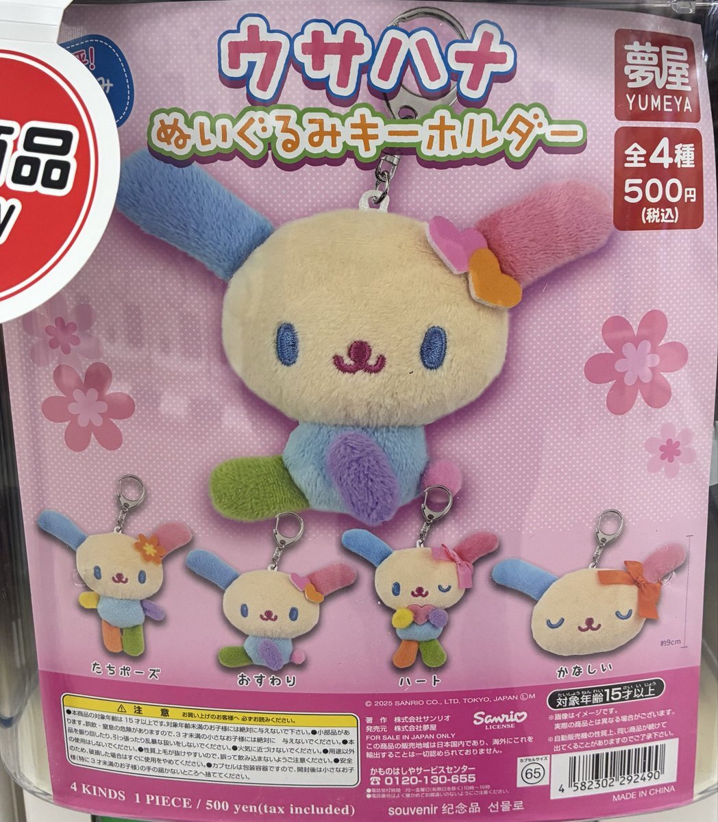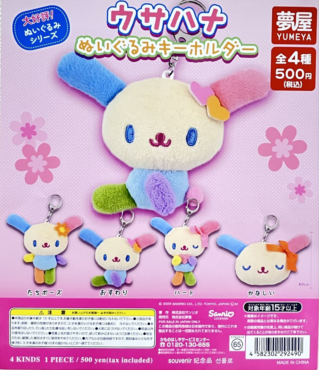 ガシャココサニーサイドモール小倉 入荷商品 #ウサハナ ぬいぐるみキーホルダー ウサハナ好きは必見 🩷💛💚🩵💙💜 バッグにつけて周りに自慢しちゃいましょう🎶 ご来店お待ちしております! #ウサハナ #サンリオ #ぬいぐるみキーホルダー #ガチャガチャ #ガシャココ pic.x.com/86PYoE99oo