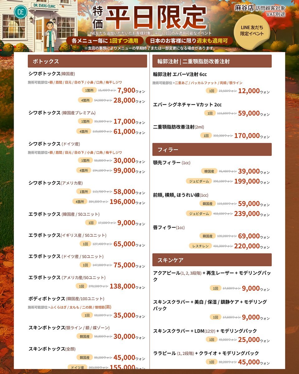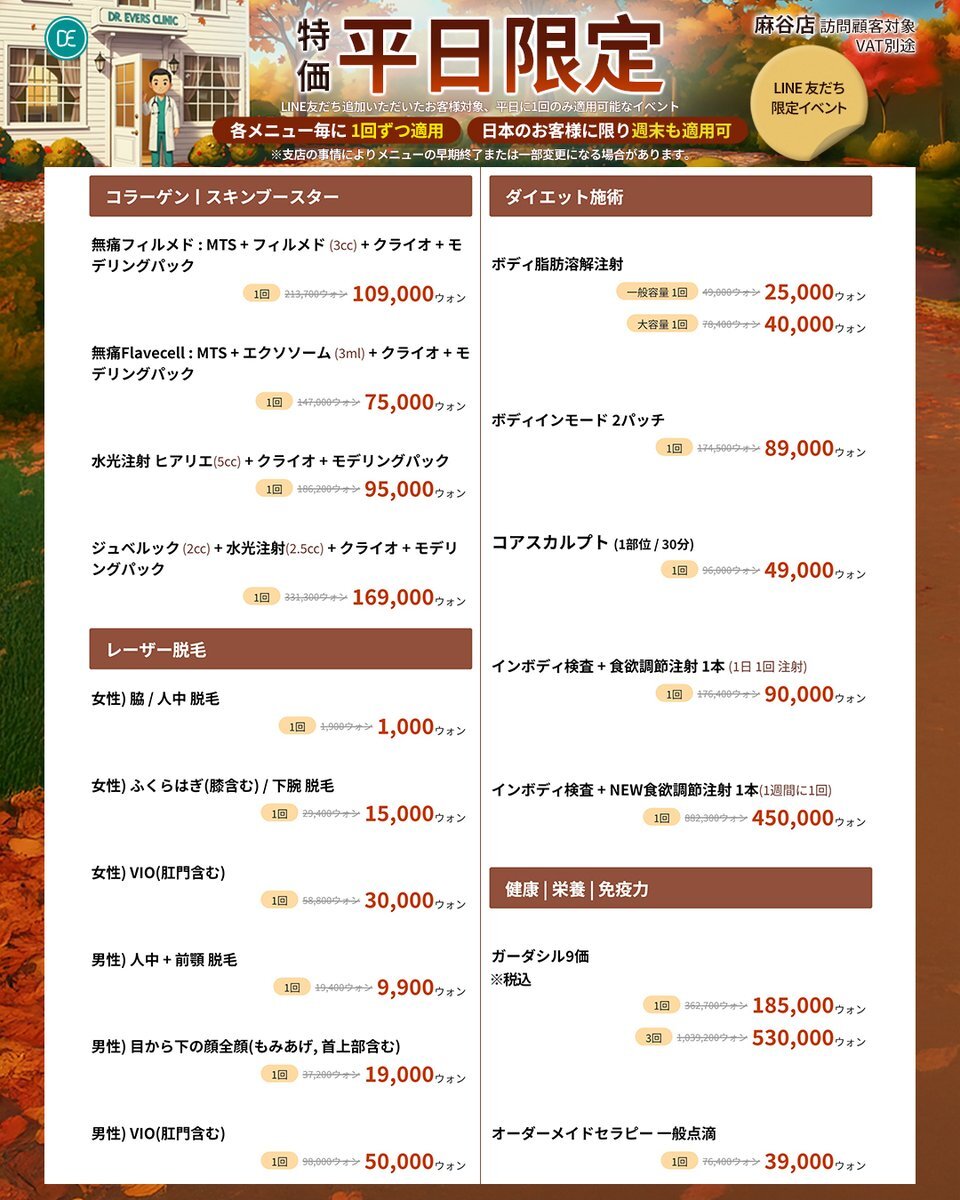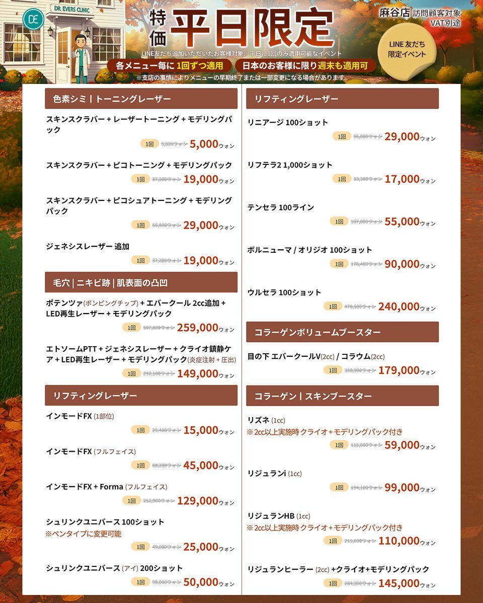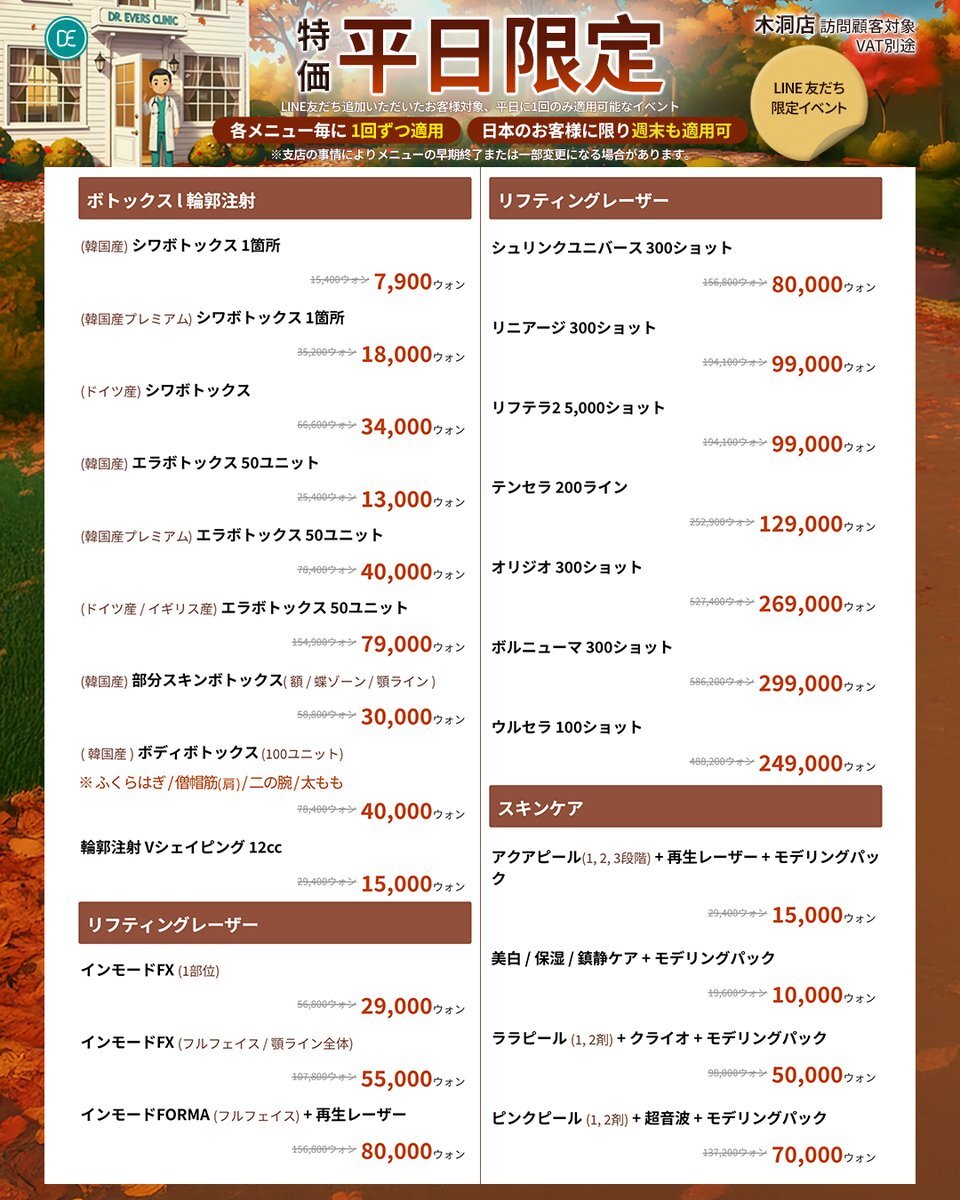 ✦✦ドクターエバーズ木洞店✦✦ 日本のお客様に限り週末も適用可📅❣️ \11月平日イベント大公開/ おすすめメニューは… 乾燥対策に◎ #LDM水玉リフティング 🥰 肌のコラーゲン再生に #リジュランヒーラー 💉 人気リフティング🎵 #ウルセラ 🚀 ✦イベント適用条件✦ ✓公式アカウントのフォロー pic.x.com/VLiCHvESOe