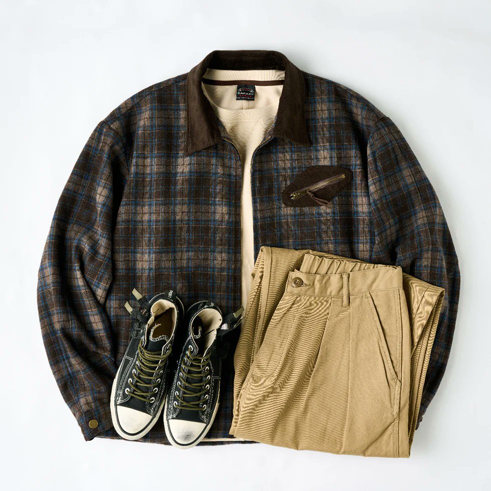 \ツイード×コーデュロイの最強コンビ/ #ウール 混ツイードのチェック柄に、#コーデュロイ の切替を効かせたデトロイトジャケット。 上品さとワークテイストが絶妙に融合した一着です。 🛒reurl.cc/2Qnq3v #karaku #ジャケット #秋コーデ #menswear pic.x.com/rbSME95Zt1