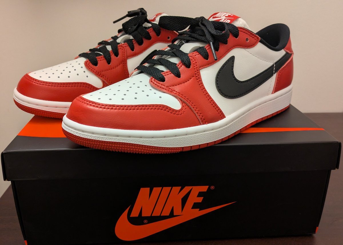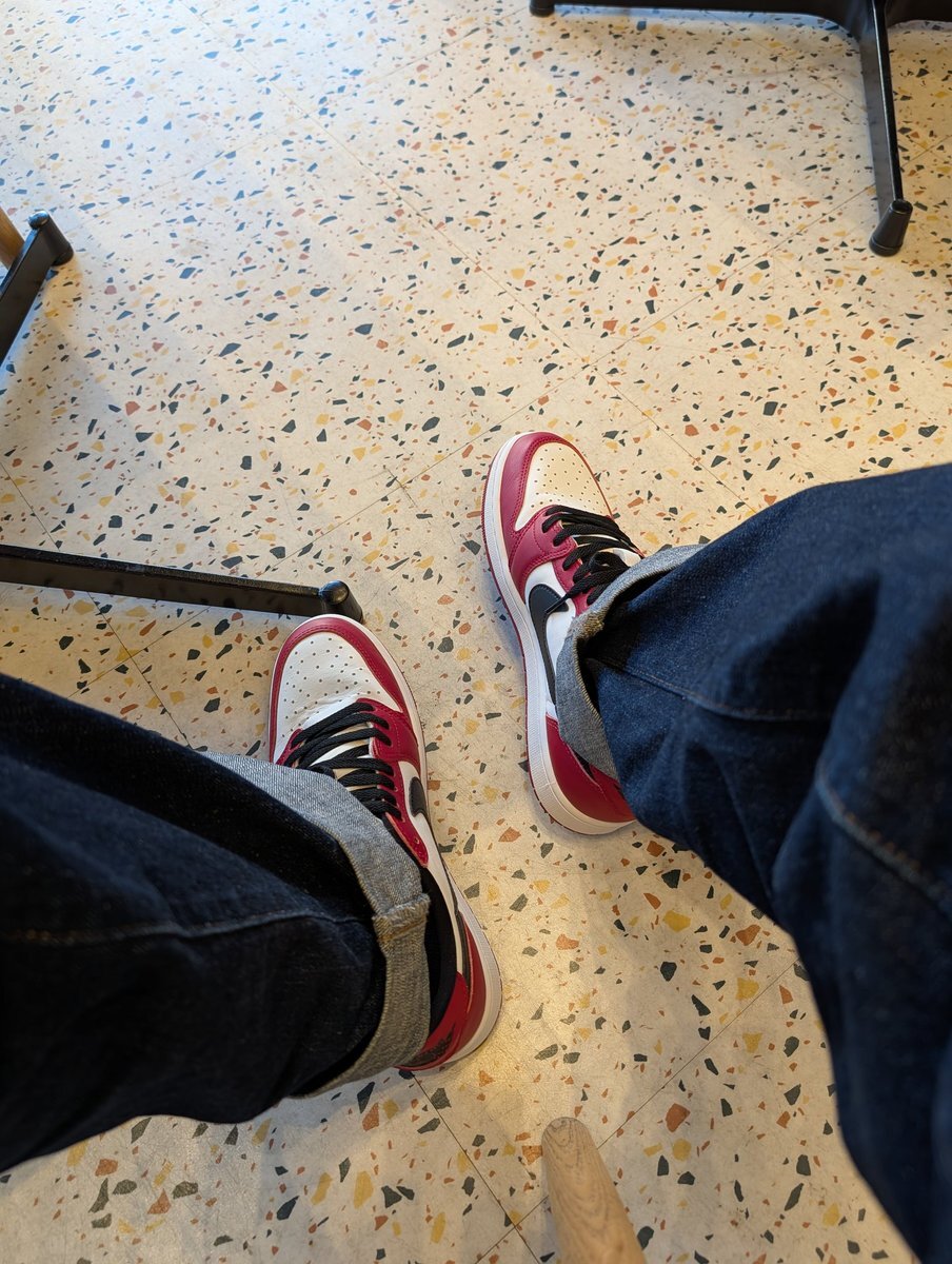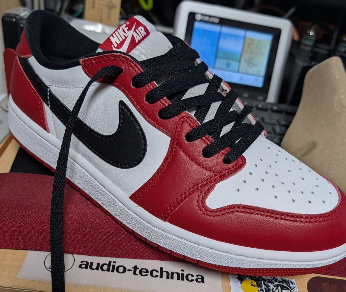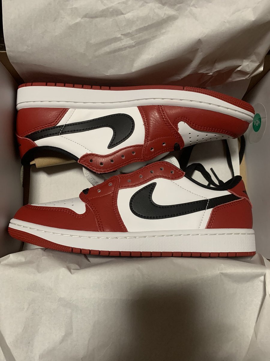 Chicago Low届いたー☺️ 早速履いてみたけど、なんだろう…つま先近くの窮屈さが無く…気のせいかな?🤔 コーデむずいけど、明日本履きします👟 #エアジョーダン pic.x.com/5KyDtm1m6j