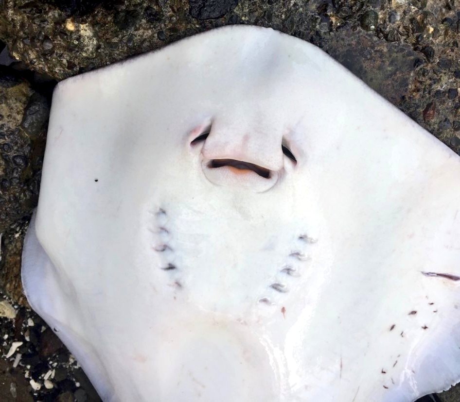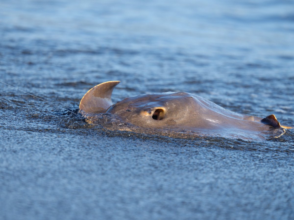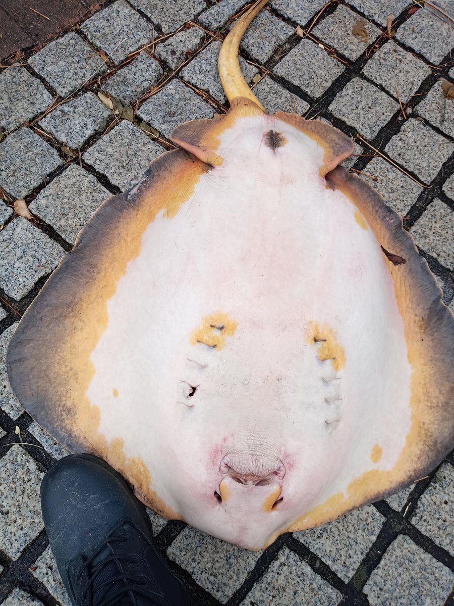 クビワカモメを見ていたら、大きな #エイ が釣り上げられていました。 なんていう種類だろう? この後、リリースされていました。 写真はアップしませんが、左右の目の隣にある穴(鼻の穴?噴水孔?)に手の指を入れて持つのがエイの正しい持ち方らしいです。 pic.x.com/tmxZmYCN6k