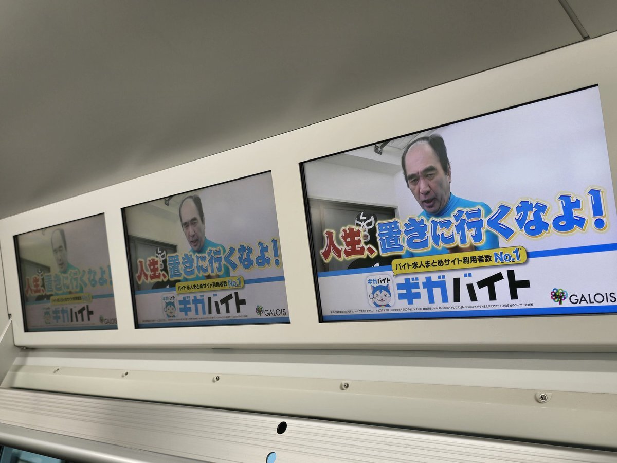 山手線で初めてギガバイトの動画広告みた😆 扉のギガバイトの広告もみたし、ファミマ行ったらケバブ味のポテトチップスも売っていたのでエガちゃん尽くしかも😁 #エガちゃん #エガちゃんねる pic.x.com/O1e8gJWgVL