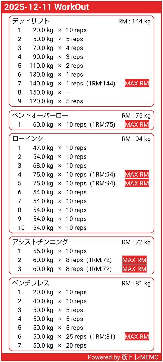 背中・胸 3週目 デッドリフトも調子が良い!次は少し上げてやります👌 久しぶりにショルダープレスを入れてみた!やっていなかった分、挙がりにくいけど、肩は取り入れようと思います。 そして、「肉体改造のピラミッド」を買ってしまった😅 ちゃんと読んで参考にしたい! #筋トレ #エニタイム pic.x.com/ROQSaj2jH2