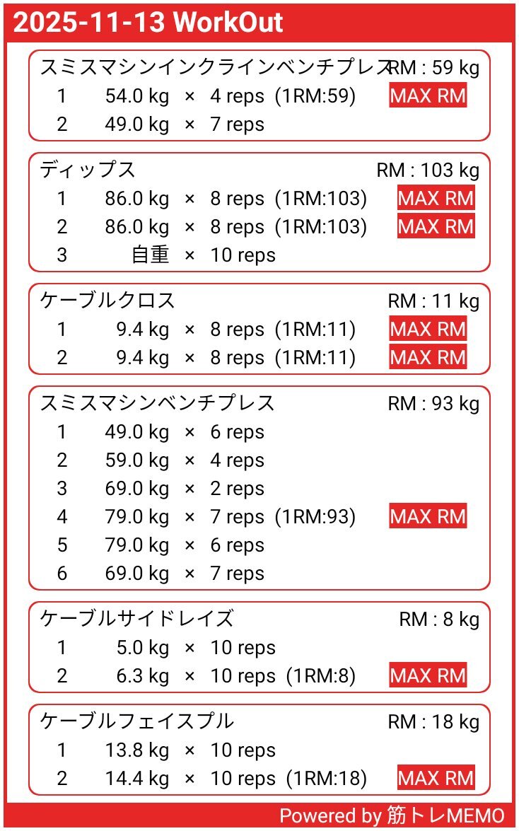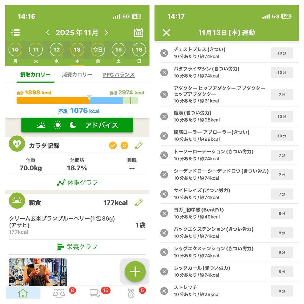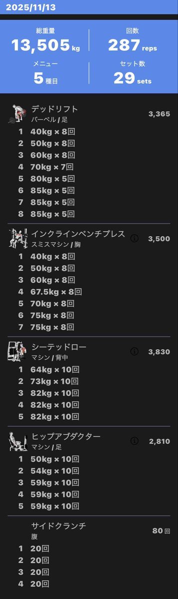 11/13(木) 筋トレ 胸背中中心 いつもながらにリバウンド!💦 ジム空いてたので自撮りしてみたけどむずい!📸 筋トレ+エリプティカル+コアトレ+ストレッチ+ヨガ🧘 #アップルウォッチ #ワークアウト #ダイエット垢さんと繋がりたい #筋トレ垢と繋がりたい #ジムトレ #エニタイム #ゴルフ肘 pic.x.com/K6ePkvYzPN