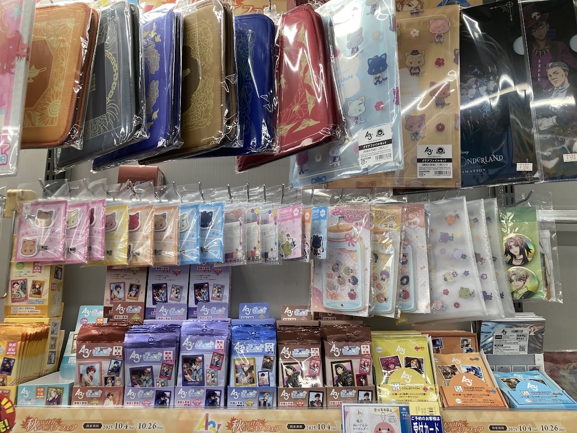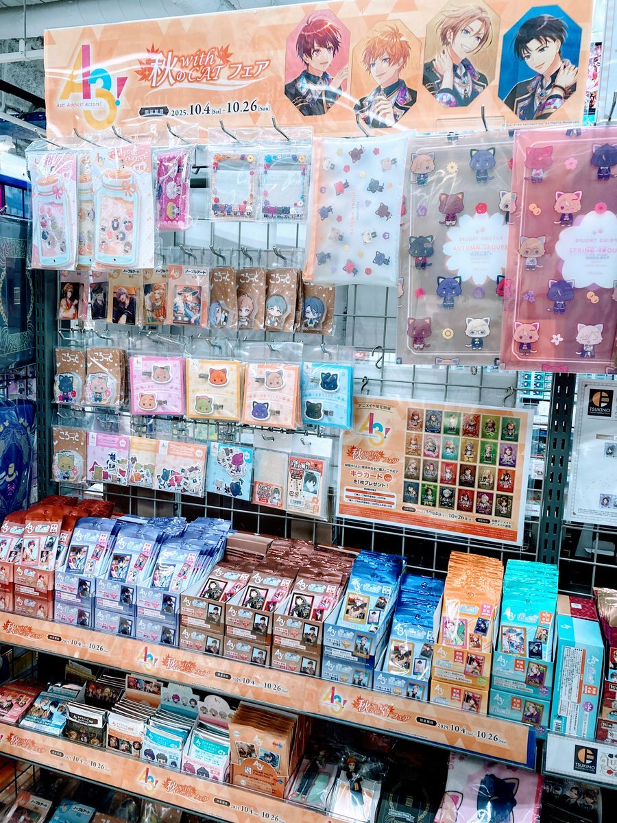 【フェア情報】⚠️まもなく終了⚠️ 「『A3!』秋の with CAT フェア」 10月26日(日)まで開催中ナノ‼ 期間中、関連商品をご購入・ご予約で 《キラカード(全24種)》を1枚プレゼント🎁✨ #エースリー 🔽詳細はPOPをチェック🔽 pic.x.com/nJQopGxWg4