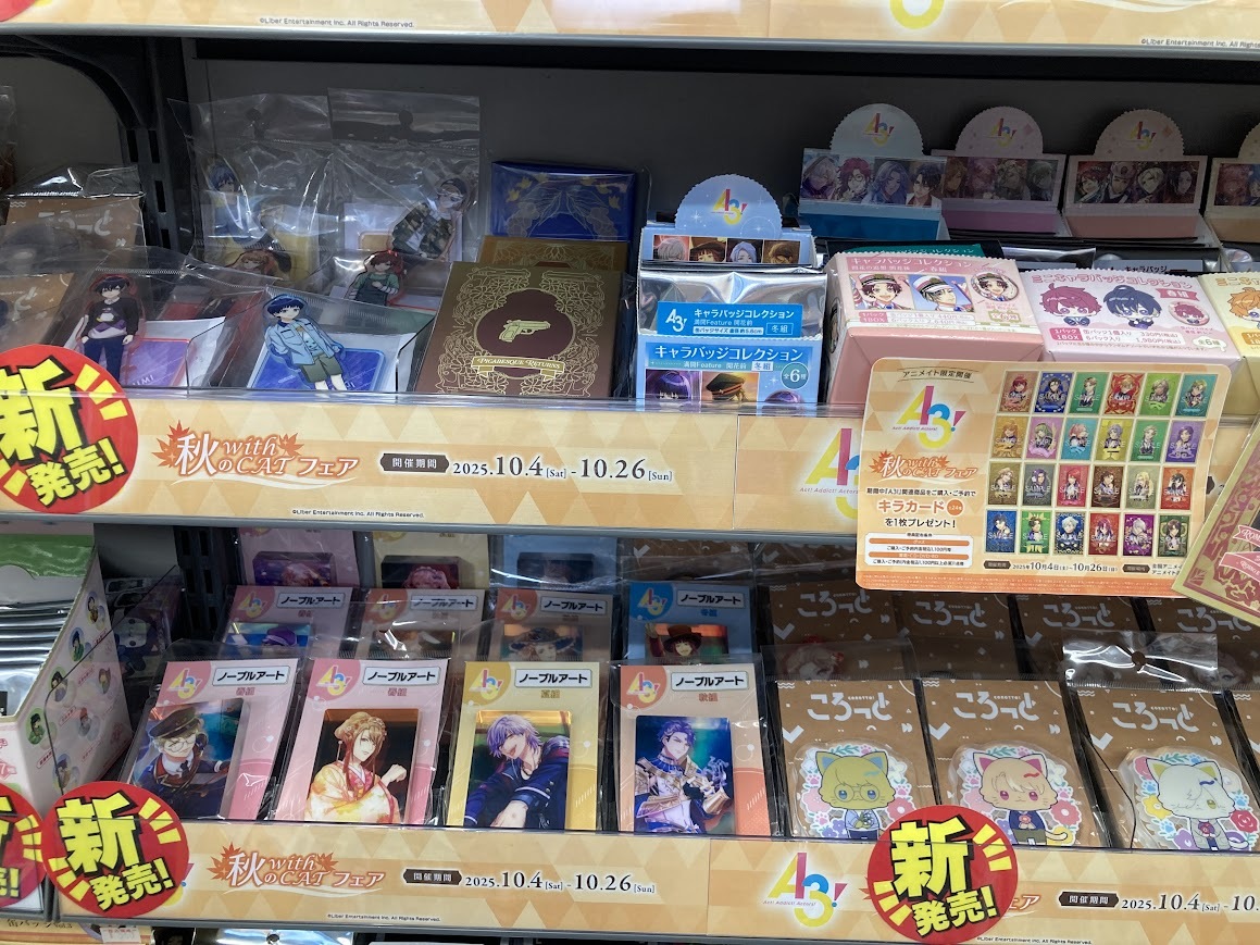 【フェア情報】 「『A3!』秋の with CAT フェア」開催中ロブ~🎉 期間中、関連商品をご購入・ご予約で《キラカード(全24種)》を1枚プレゼント🎁✨ #エースリー まもなく終了!お見逃しなく💨 pic.x.com/aSRo4NNMZE