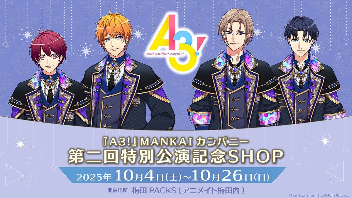 【梅田】 『A3!』MANKAIカンパニー第二回特別公演記念SHOP 最終日まで、あと3日です! 皆様のご来店、お待ちしております♪ 営業時間:11時~21時 ※本日はフリー入場となります。 ※梅田PACKSは、アニメイト梅田店 正面入り口入って右手奥にございます! HP⇒ikebukuro-packs.com/shop/title_ite… #エースリー pic.x.com/aYPi5YrZjM