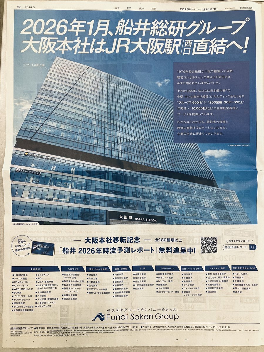 おはようございます! 新聞にも掲載されましたが、大阪本社がお引越し✨ なんとイノゲート大阪です! 楽しみですね^^ #船井総研グループ #船井総研 #新オフィス #オフィス移転 #時流予測 #企業公式つぶやき部 #企業公式が朝の挨拶を言い合う pic.x.com/iHJqWfD1sm