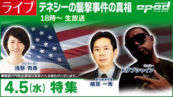 op-ed AI News Headline 9月20日分公開いたしました! #オプエド の魅力を今日もちょい見せします♪ 《ゲスト》Kダブシャイン 《NB枠》上杉隆 《中継》初沢亜利 《アンカー》倉持麟太郎 《アシスタント》黒河麻里奈 下記URLからご視聴ください。 youtu.be/NT0Ae5C-O3Q #エプスタイン